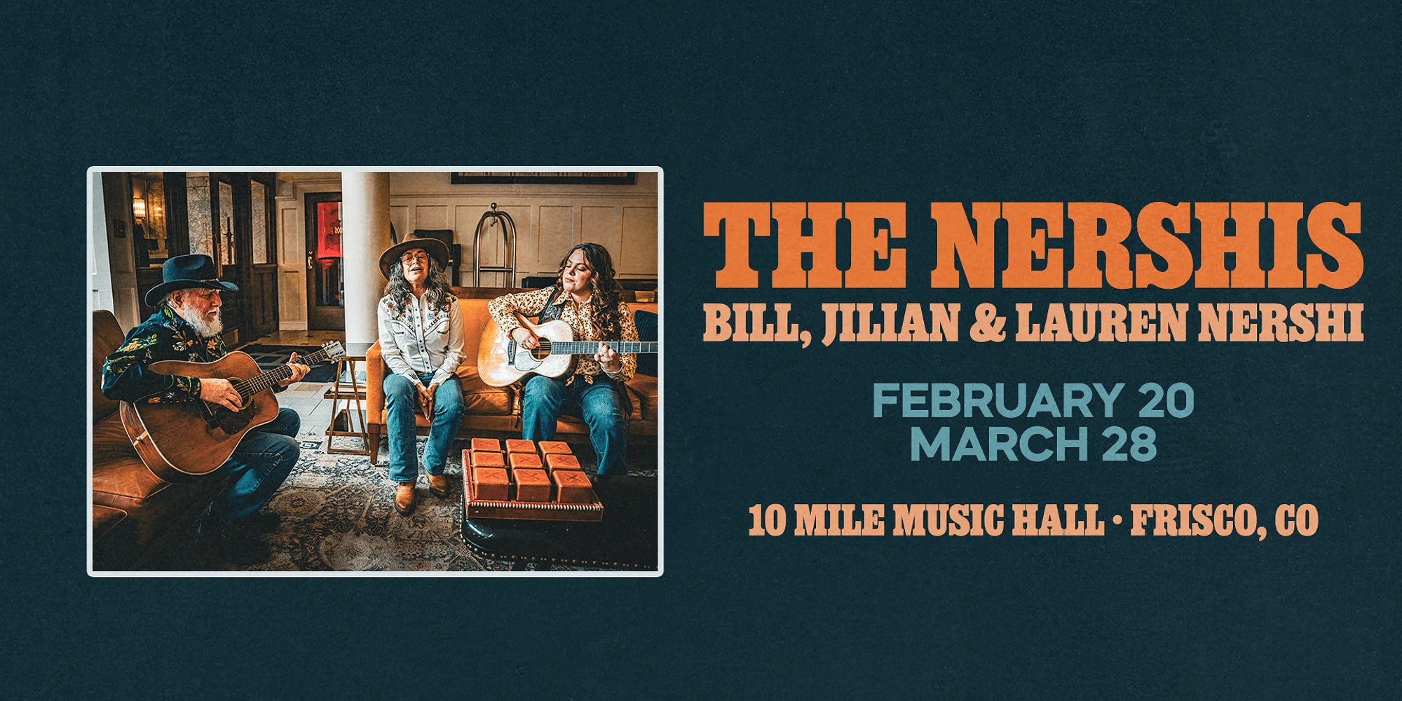 10 Mile Music Hall Presents The Nershis The family band brings together SCI co-founder and guitarist Bill Nershi, his wife and long-time songwriting partner Jilian, and their daughter Lauren for a performance that feels less like a concert and more like an open invitation into their musical living room. Stop by 10 Mile Friday, Feb. 20 and Saturday, March 28 for a stripped-down musical journey that is relaxed, unpretentious, and fiercely authentic. Whether they are trading stories or locking into a three-part vocal swell, it’s a reminder that music is, at its core, a conversation between loved ones. 7:00 doors GET TICKETS