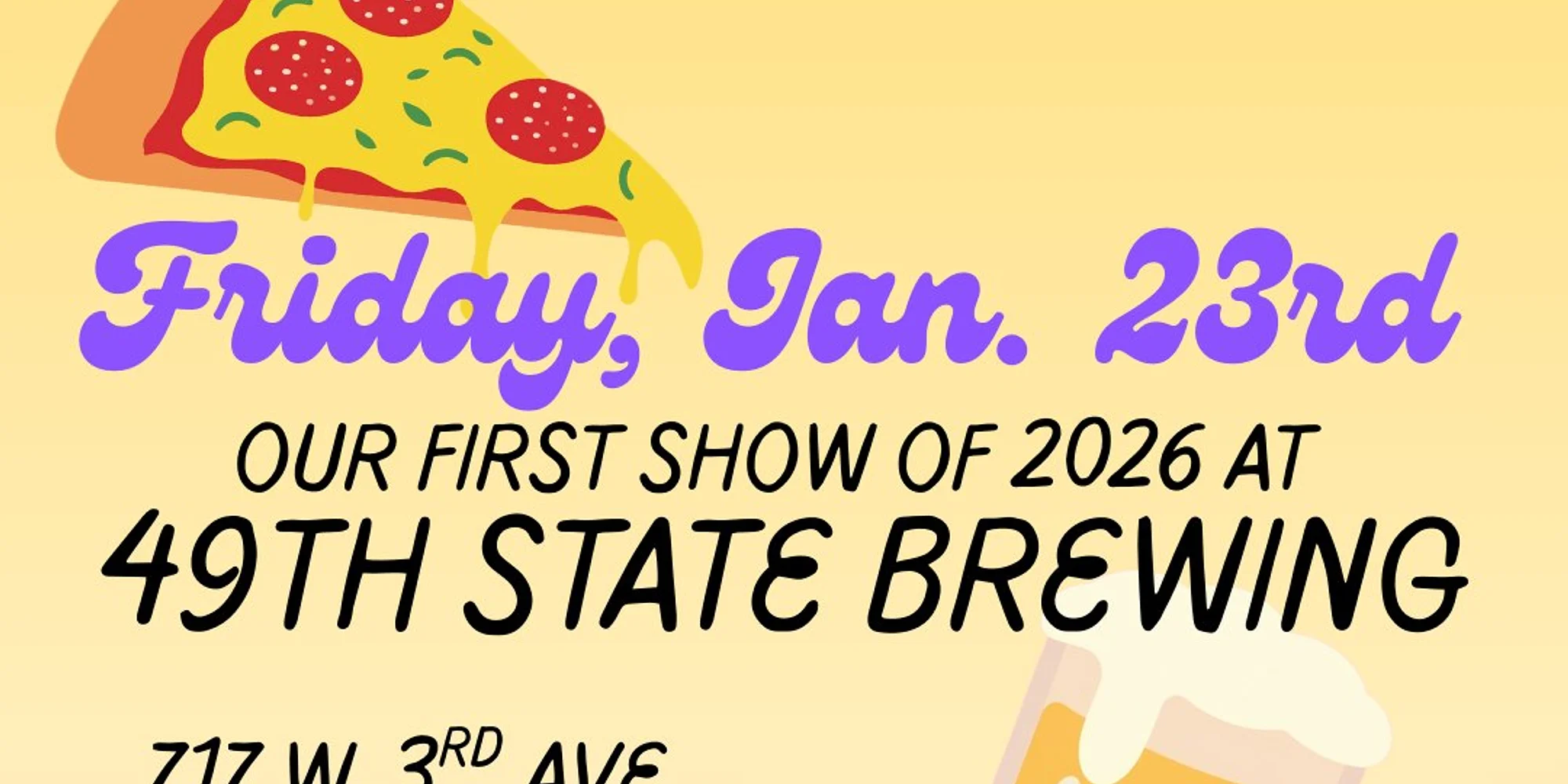We never stop wanting to make you laugh! We’re back at it this FRIDAY, January 23rd at 49th State Brewing. Come out for dinner, drinks, and improv comedy! Doors open at 7, the show starts at 8. Get Tickets