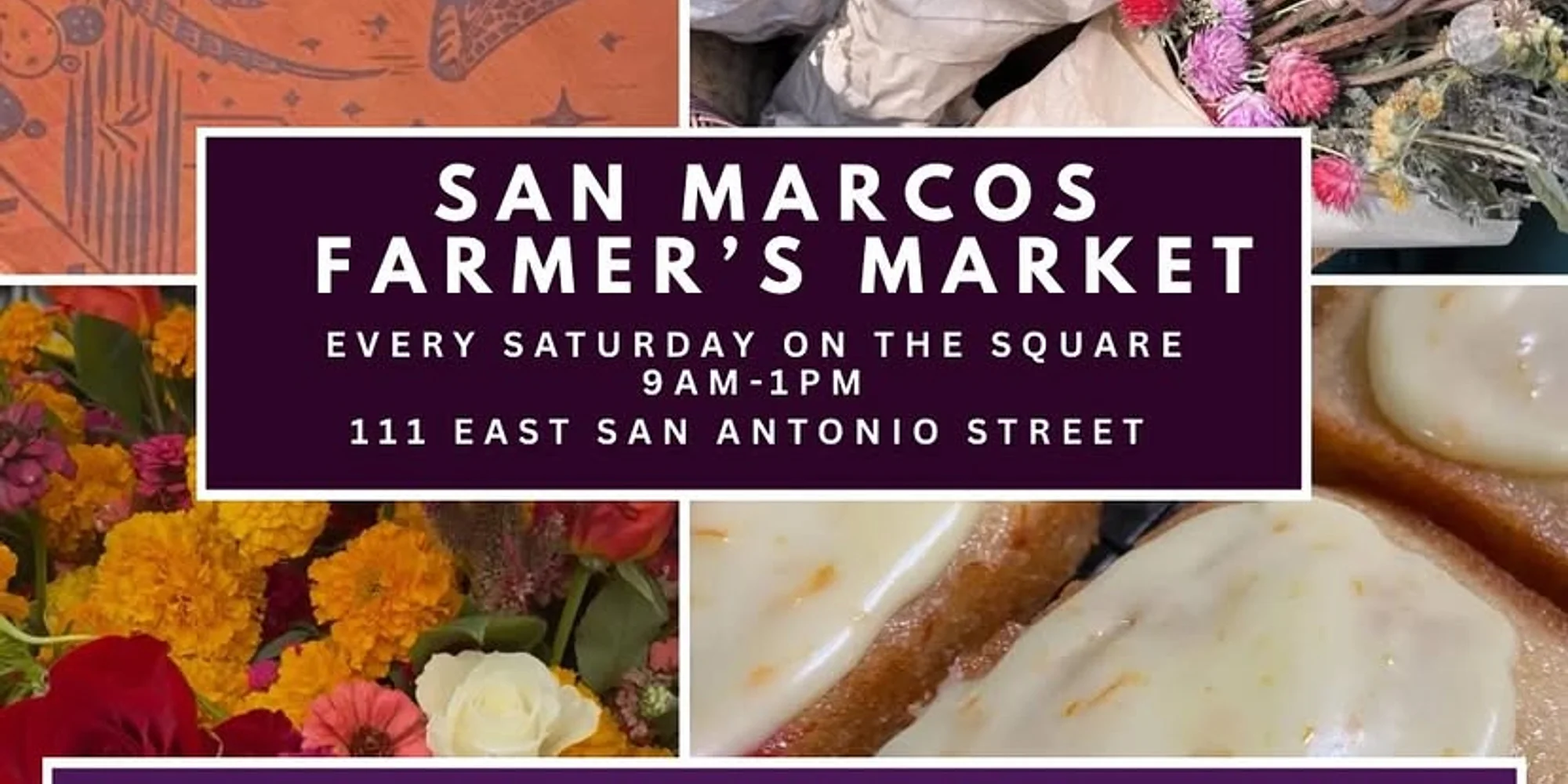 Join us for the San Marcos Farmers Market! On the square in downtown San Marcos every Saturday rain or shine. We’re set up on the street next to the courthouse with tons of local vendors selling fresh produce, eggs, honey, artisan soaps, baked goods, plants, jams, and so much more! Often joined by live music and other events on the courthouse lawn, it’s a lovely way to spend your Saturday morning.