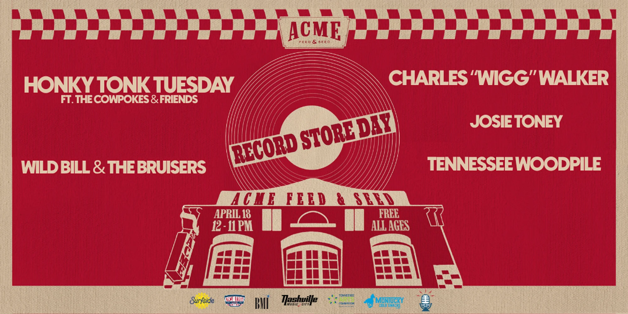 Expect killer local bands, cheap cold beer, and maybe a surprise or two 👀 We’re also launching our new Saturday evening rooftop series, Bluegrass By The River 🪕 Lineup: First Floor 12n - 2pm: Soul Brunch with Charles "Wigg" Walker 2:30pm - 3:30pm: Josie Toney 4pm - 7pm: Honky Tonk Tuesday Presents The Cowpokes w/ Special Guests 8pm - 11pm: Wild Bill & The Bruisers Rooftop 6:30pm - 7:30pm: Tennessee Woodpile 8pm - 9:30pm: To Be Announced ALL DAY: Bring a receipt from any local record store, day of, and we’ll give you a Montucky Cold Snack on the house (21+ only). Event Details: Free / First Floor / All-Ages
