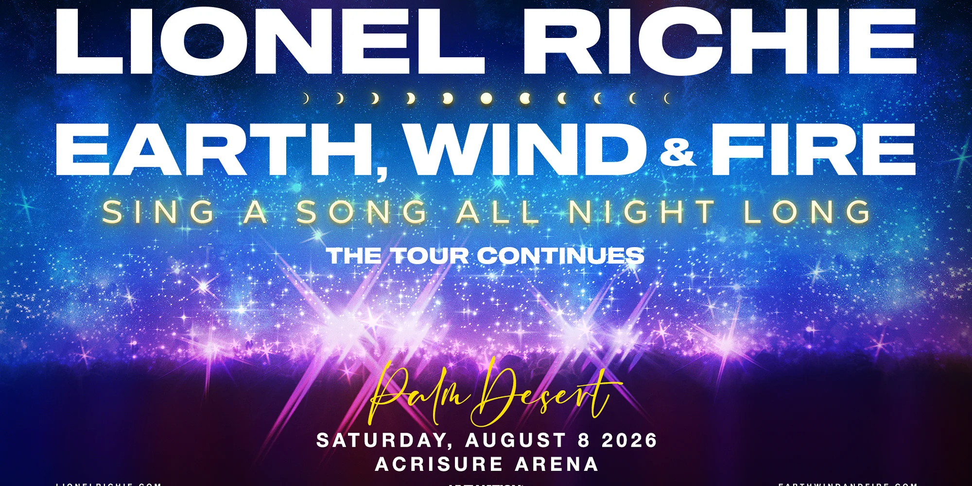 Legendary singer, songwriter and producer Lionel Richie and one of the best-selling bands of all time, Earth, Wind & Fire announced their 2026 North American Tour. General onsale beginning Friday, January 30 at 10am local time at ticketmaster.com. International superstar Lionel Richie boasts a discography of albums and singles that is second to none. With more than 125 million albums sold worldwide, an Oscar®, Golden Globe®, and four Grammy Awards®, Richie has been honored with distinctions including 2016 MusiCares Person of the Year, and the 2017 Kennedy Center Honors. Earth, Wind & Fire are a music institution. In 1969, music legend Maurice White birthed the music force named after the elements from his very own astrological charts. With soul as deep as the plant, Earth, Wind & Fire charted a history that will live on forever. EVENT LAYOUT