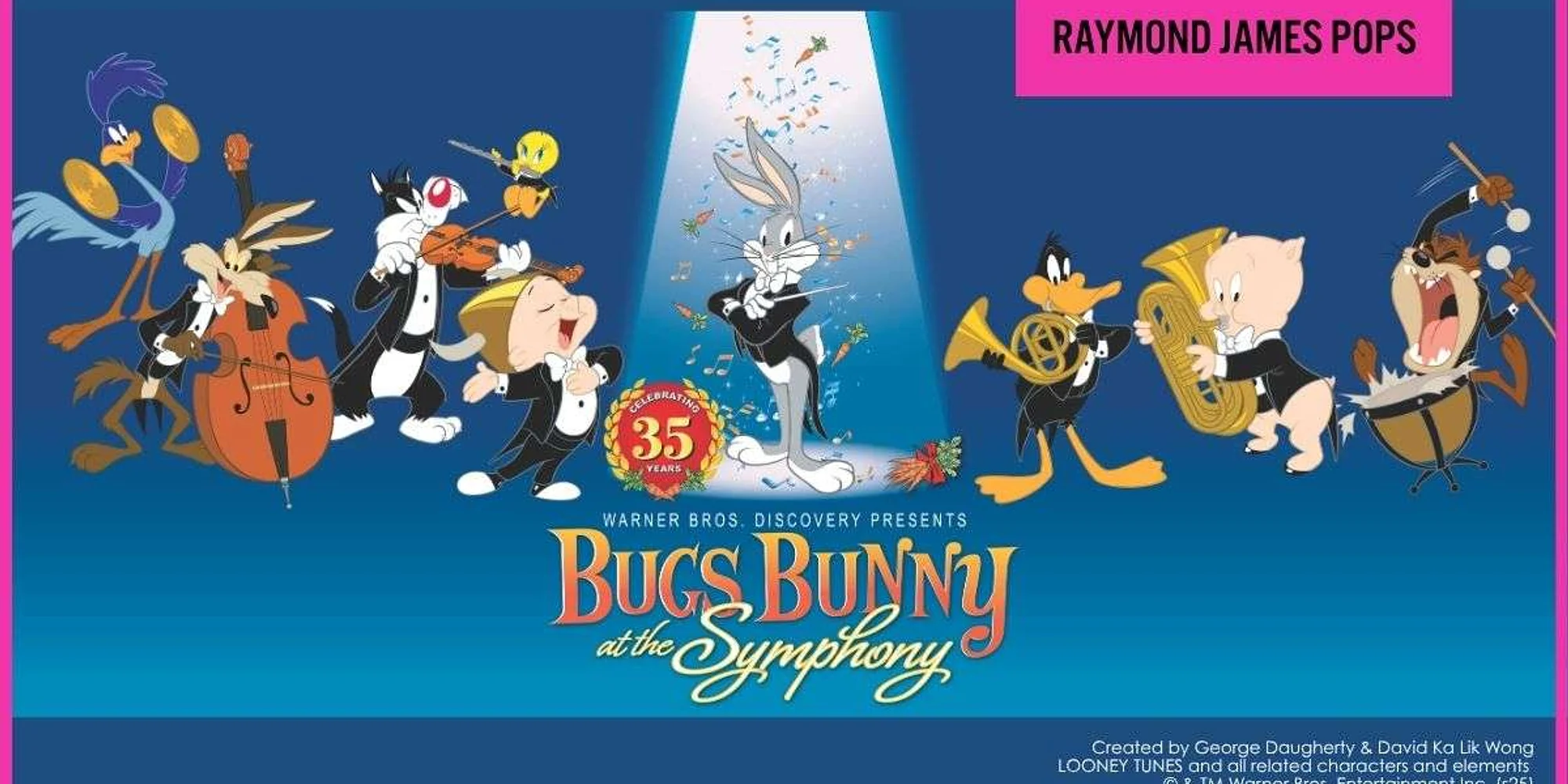 “What’s up, Doc?” Warner Bros. Discovery presents “Bugs Bunny at the Symphony.” Sixteen classic Looney Tunes are projected on the big screen, while The Florida Orchestra plays their iconic original scores live! Celebrate Bugs Bunny’s 85th anniversary, and the concert’s 35th, with “What’s Opera, Doc?” “The Rabbit of Seville,” “Long-Haired Hare,” “Corny Concerto,” and more, plus a brand new animated short as the entire Looney Tunes gang wishes Bugs a happy 85th! Created by George Daugherty & David Ka Lik Wong LOONEY TUNES and all related characters and elements © & TM Warner Bros. Entertainment Inc. (s25)