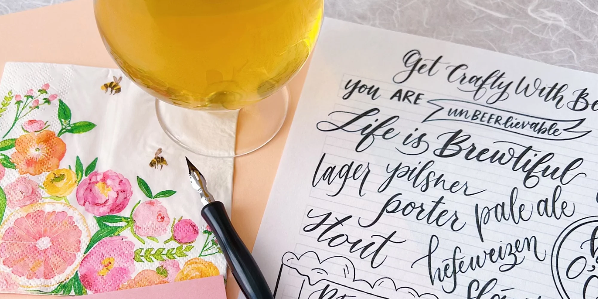 Join Sip & Script® for an Afternoon of Learning Calligraphy! Join us at Alameda Brewing in Alameda, CA for pretty lettering! Whether you’re a stationery nerd, DIY Bride-to-be, or just a crafty individual, you’ll be introduced to modern calligraphy with a pointed dip pen and ink in this workshop. We will cover all the basics and prepare you to add those unique lettered details to your snail mail, wedding paper goods, home decor, and more! The perfect crafty afternoon out! Class includes 1.5 hours of instruction and demonstration, our beginner’s calligraphy kit (two nibs, black ink pot, 2 letter guides, tracing paper, and straight pen holder), and all materials to write on. Everything is yours to keep at the end of the workshop! Get your tickes here