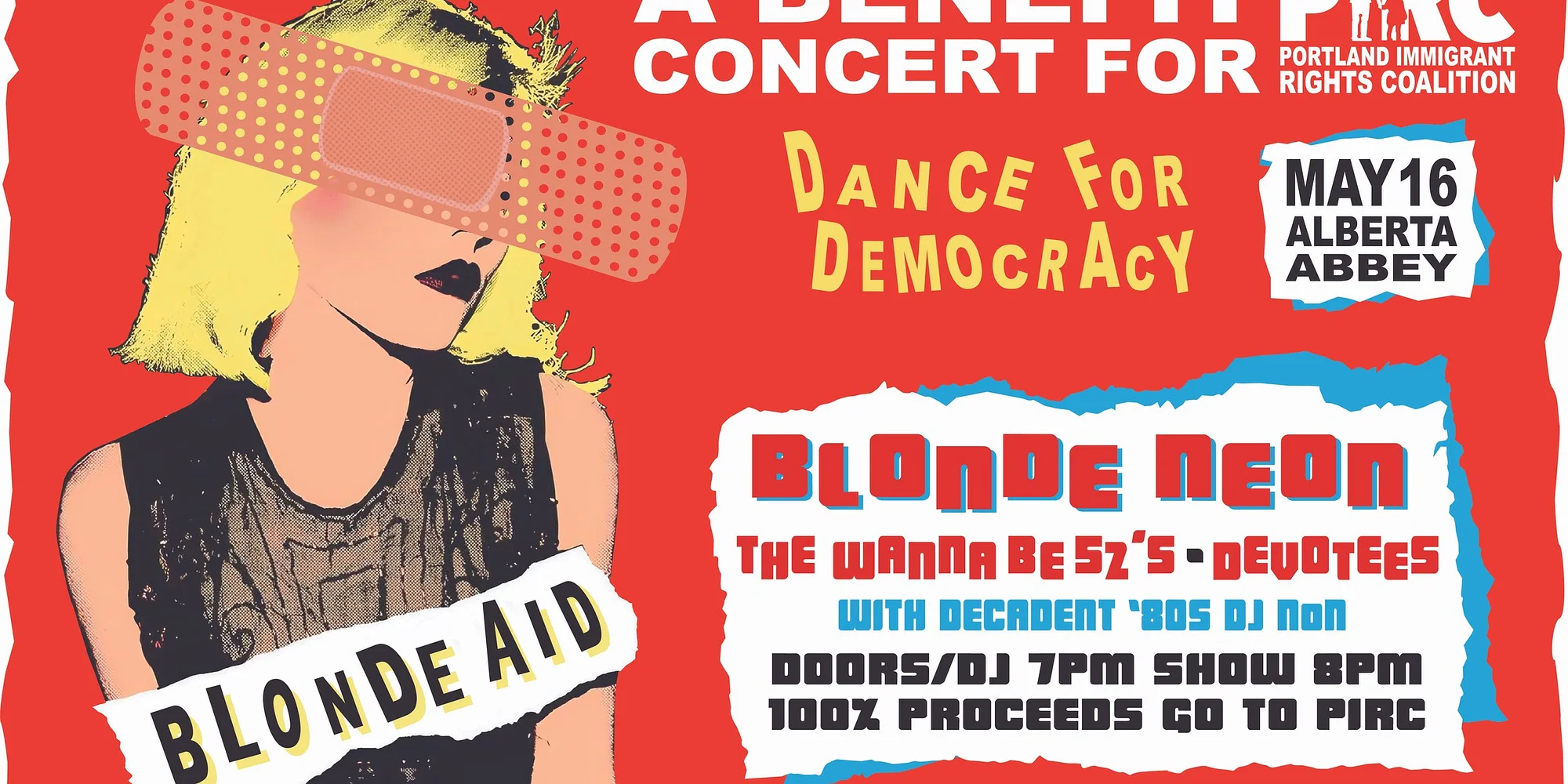 Buy Tickets Blonde Neon teams up with a stacked lineup for an all-out-80's benefit concert supporting the Portland Immigrant Rights Coalition. You've seen the news. Watched the videos. Maybe witnessed in-person injustices targeting immigrant families in our own backyard. Blonde Neon asked "what can we do?" So we brought in our friends The Wanna Be-52’s, DEVOtees, and Decadent ‘80s to host a benefit concert that will donate 100% of proceeds to the Portland Immigrant Rights Coalition (PIRC). This grassroots Portland organization runs a 24/7 hotline, provides legal support, and mobilizes volunteers to defend immigrant families across Oregon. Music brings us together, and so does showing up for our Portland community. We are proud to support the people who enrich our city every day. Come for the music, stay for the community — and know that every ticket makes a difference. Blonde Neon Step into the neon glow and let the synth waves wash over you. Blonde Neon brings the electric energy of '80s new wave and rock to life, celebrating the fierce female voices that defined a generation. From Blondie's punk-pop perfection to Heart's arena rock anthems, from the Go-Go's infectious energy to Berlin's sultry new wave sophistication, Blonde Neon covers it all. Whether you're craving the driving beat of Pat Benatar, the quirky charm of Missing Persons, or the electronic pulse of Yaz, this band delivers with precision, passion, and just the right amount of '80s attitude. More than just a cover band, Blonde Neon is a celebration—a chance to relive the music that soundtracked the most electric decade in rock history. Come for the nostalgia, stay for the party, and dance like it's 1985 all over again. The Wanna Be-52’s The Wanna Be-52’s is Portland, Oregon’s tribute to the original post-punk, new wave pioneers, often hailed as being The World’s Greatest Party Band! From “Rock Lobster” to “Love Shack” and everything in between, this band has been polishing their authentic sounding, stripped down tribute for more than 12 years! They focus on the first two legendary albums (the “Red” and “Yellow” albums) and include later dance floor favorites from the band’s top charting hits. Attend any of their super energetic performances, and it’ll be a party out of bounds on your cosmic trip to Planet Claire and beyond. DEVOtees Hailing from Portland, OR, DEVOtees is the premier tribute band dedicated to celebrating the pioneering new wave and synth-pop sound of DEVO. They bring the energy, quirkiness, and innovative spirit of DEVO to life. Decadent ‘80s Portland’s longest running 80s night. Often imitated but never duplicated, every week D80s has been here for the last 22 years. If you know and love '80s Alternative music then this is your night. DJ NoN has been a club DJ and promoter for 36 years, playing clubs and events around the U.S. as well as in Canada, Mexico, Europe and China.