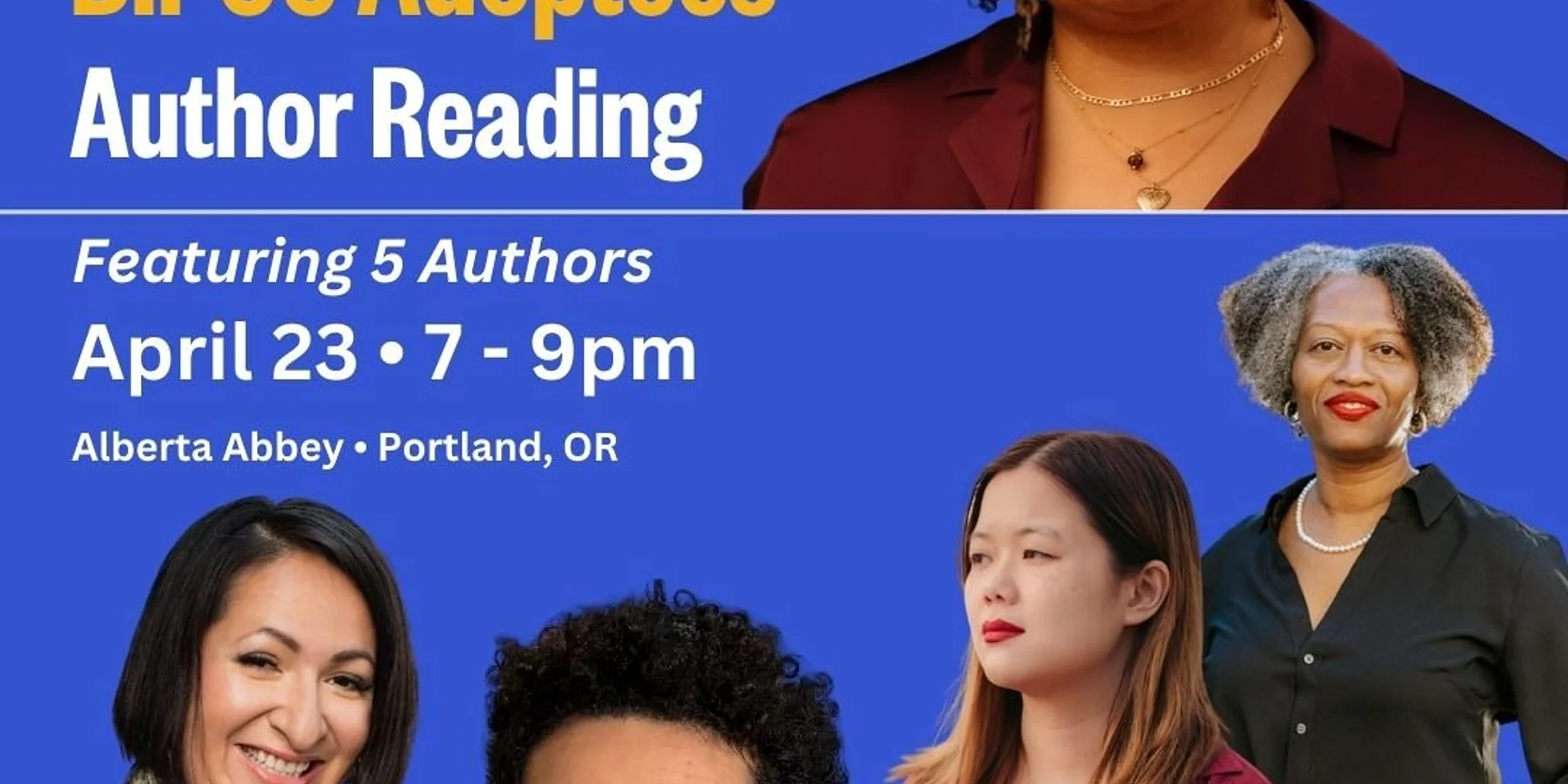 MORE INFORMATION & GET TICKETS MORE INFORMATION & GET TICKETS Join us for a powerful evening featuring five BIPOC adoptee authors sharing their work and engaging in conversation. More than a reading, this event creates space for storytelling, connection, and empowerment—reclaiming narratives that are often overlooked or overshadowed. Through spoken word and discussion, we aim to elevate adoptee voices, challenge dominant cultural narratives, and build community. This event is open to the public and made possible by our sponsors: Regional Arts & Culture Council (RACC), Alberta Abbey, the City of Portland, Bishop & Wilde Books, and the Arts Access Fund. Please note: This is an in-person event and will not be livestreamed. 📖 Book Signing & Sales: Books will be available for purchase immediately following the event, provided by Bishop & Wilde Books. Authors will be available to sign both new and previously purchased copies. ⏰ Doors Open: 6:30 PM More About the Authors Leah Altman Leah Altman (Oglala Lakota) is a Native American transracial adoptee and second-generation Persian immigrant. She has worked as a freelance journalist and editor for over 15 years, alongside her work in fundraising and grant writing for Native and BIPOC-led nonprofit organizations serving families and the environment. Leah lives in the Pacific Northwest and is an alum of the Institute of American Indian Arts and Portland State University's Book Publishing program. Her work has been featured in publications such as Oregon Humanities, The Oregonian, Underscore, and Indian Country Today. She is an avid pool player, bead worker, fickle hiker, fair-weather kayaker, and mama bear of two young girls. She lives in Washington State. Connect with Leah on Instagram @ln8ive KE Garland K E Garland (she/her) is a same-race, domestic adoptee and an award-winning creative nonfiction writer and blogger. She writes to demarginalize women's issues. Her essays have been published in several anthologies, including Chicken Soup for the Soul's I'm Speaking Now: Black Women Share their Truth in 101 Stories of Love, Courage and Hope and Mamas, Martyrs, and Jezebels. Her work has also appeared in online magazines such as midnight & indigo and Raising Mothers. Garland's debut memoir, In Search of a Salve: Memoir of a Sex Addict, illustrates how unresolved, interrelated trauma, including adoption, can lead to a behavioral addiction. Her book was long listed for the 2023 Santa Fe Writers Project. She is also a co-founder of the Black Adoptees Meetup. Connect with KE on Instagram @kegarland // Find KE on the web www.kegarland.com Matan Gold Matan Gold keeps trying to be a writer. Find Matan on the web www.matangold.com Dani Janae Dani Janae is a poet and journalist from Pittsburgh, Pennsylvania. Her work has been published by Longleaf Review, SWWIM, Palette Poetry, South Florida Poetry Journal, and others. Hound Triptych (Sundress Publications) is her first collection of poetry. She l...