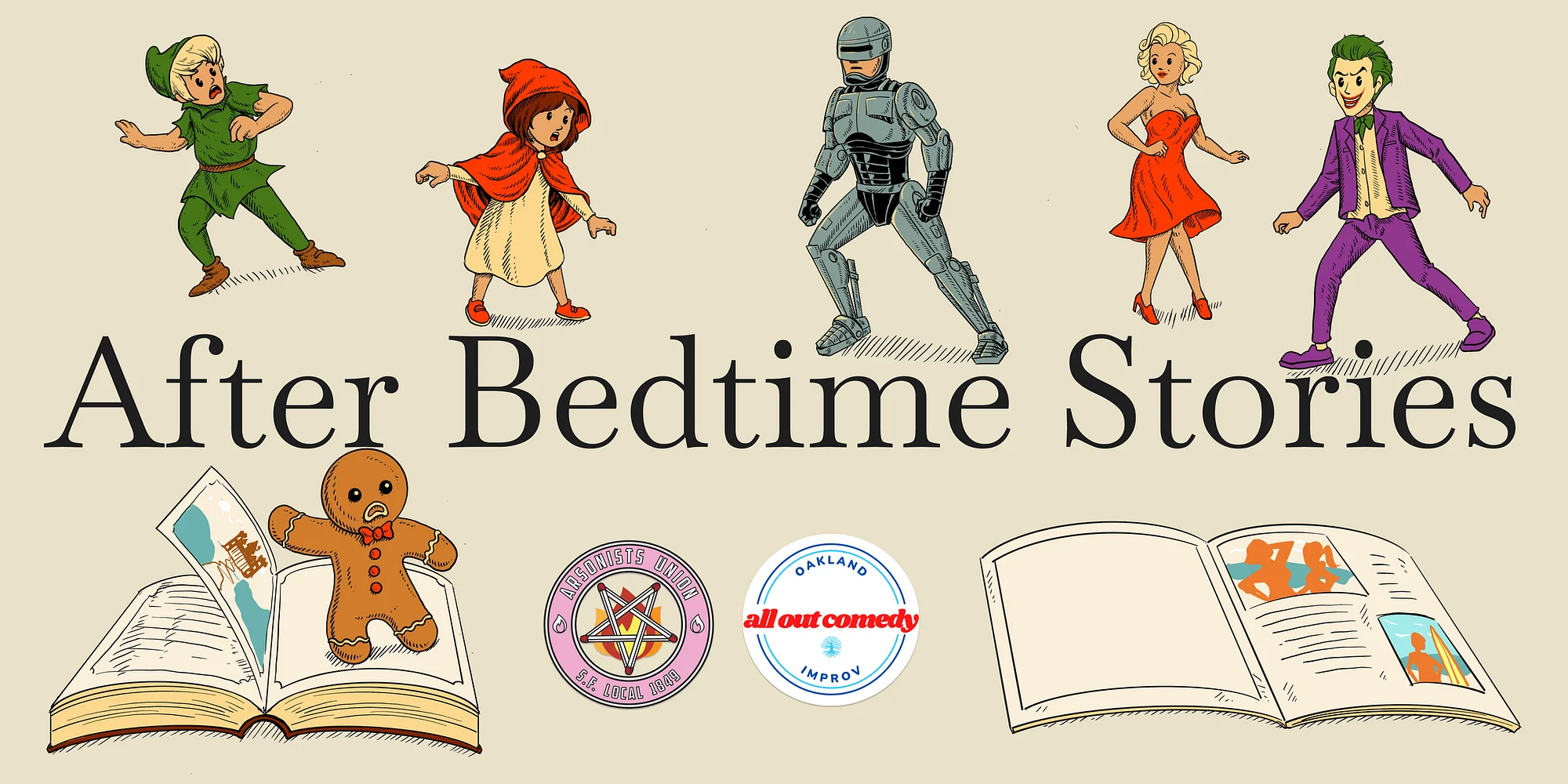 Tickets After Bed Time Stories Preview A night of made up comedy based on your favorite bed time stories. Dates: First Fridays of the Month at 8:00pm. Doors Open 7:30pm Tickets: $15 Online/$20 At The Door Location: All Out Comedy Theater, 2550 Telegraph Avenue, Oakland, CA 94612 *Please check your maps says Oakland. There's a duplicate address in Berkeley.