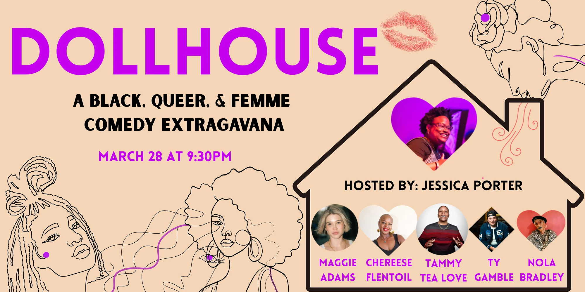 tickets Dollhouse Stand Up Comedy A night of laughs and community, centering the Black, Queer and Femme experiences in comedy….and the occasional ally! Come see some of the finest comedic voices in The Bay! Laughter is the best medicine for a sad world, some come heal in community! Dates: Fourth Saturdays of the Month, 9:30pm-10:30pm Tickets: $12 Online/$15 At The Door Restrictions: None, we are an all ages theater. However, we can not guarantee the content is kid friendly. Location: All Out Comedy Theater, 2550 Telegraph Avenue, Oakland, CA 94612 *Please check your maps says Oakland. There's a duplicate address in Berkeley.