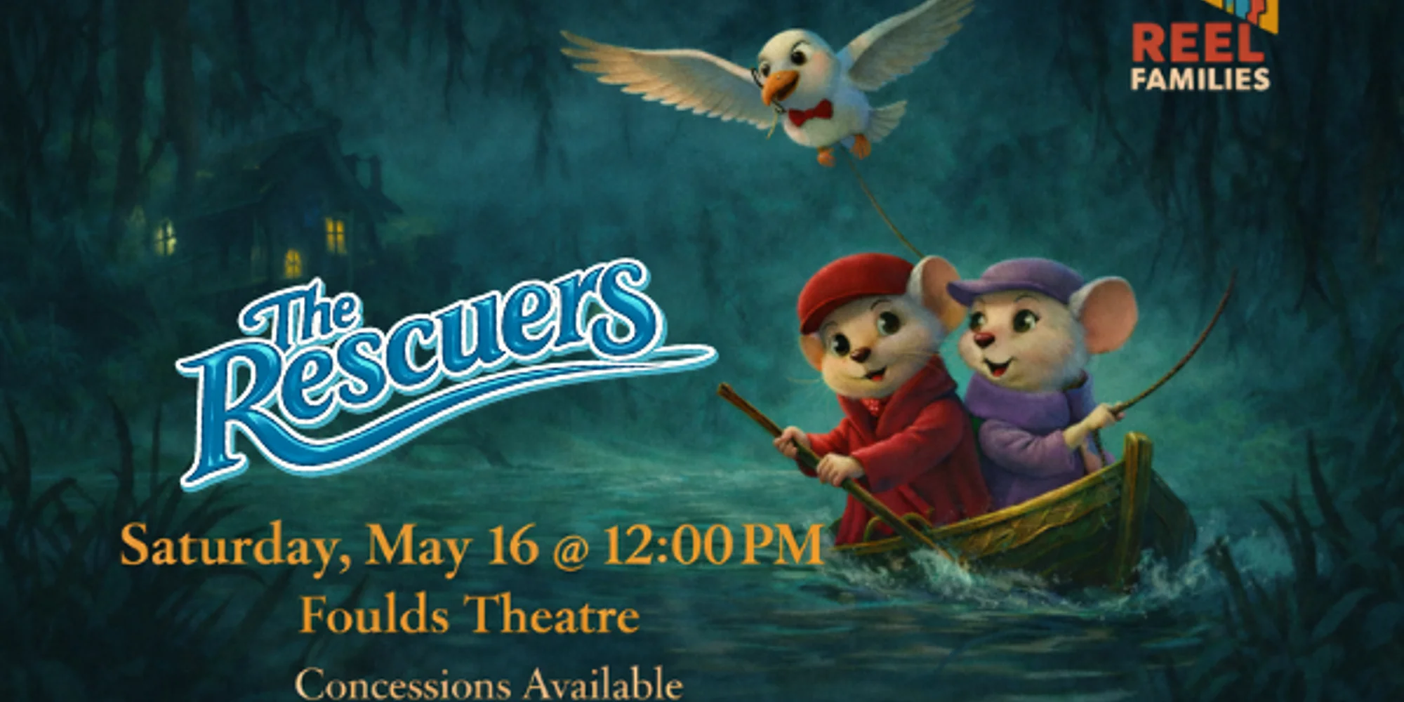 Reel Families Film Series – Free Screening 📅 Saturday, May 16 at 12:00 PM 📍 Alliance for the Arts – Foulds Theatre 🎟️ Free Admission | Fun for All Ages Embark on a courageous animated adventure starring two brave mice from a global rescue society as they set out to save a kidnapped orphan girl from the clutches of a wicked treasure hunter. With help from a quirky cast of animal friends, this heartfelt journey is filled with suspense, humor, and the power of teamwork. 🎨 Start your day with Art Lab at 10:00 AM 🍿 Concessions available 🎬 Experience the magic on the big screen with your community Don’t miss this delightful tale of friendship, bravery, and hope—perfect for moviegoers of all ages! Ushers and Concessions needed! To volunteer, please click on the link below: