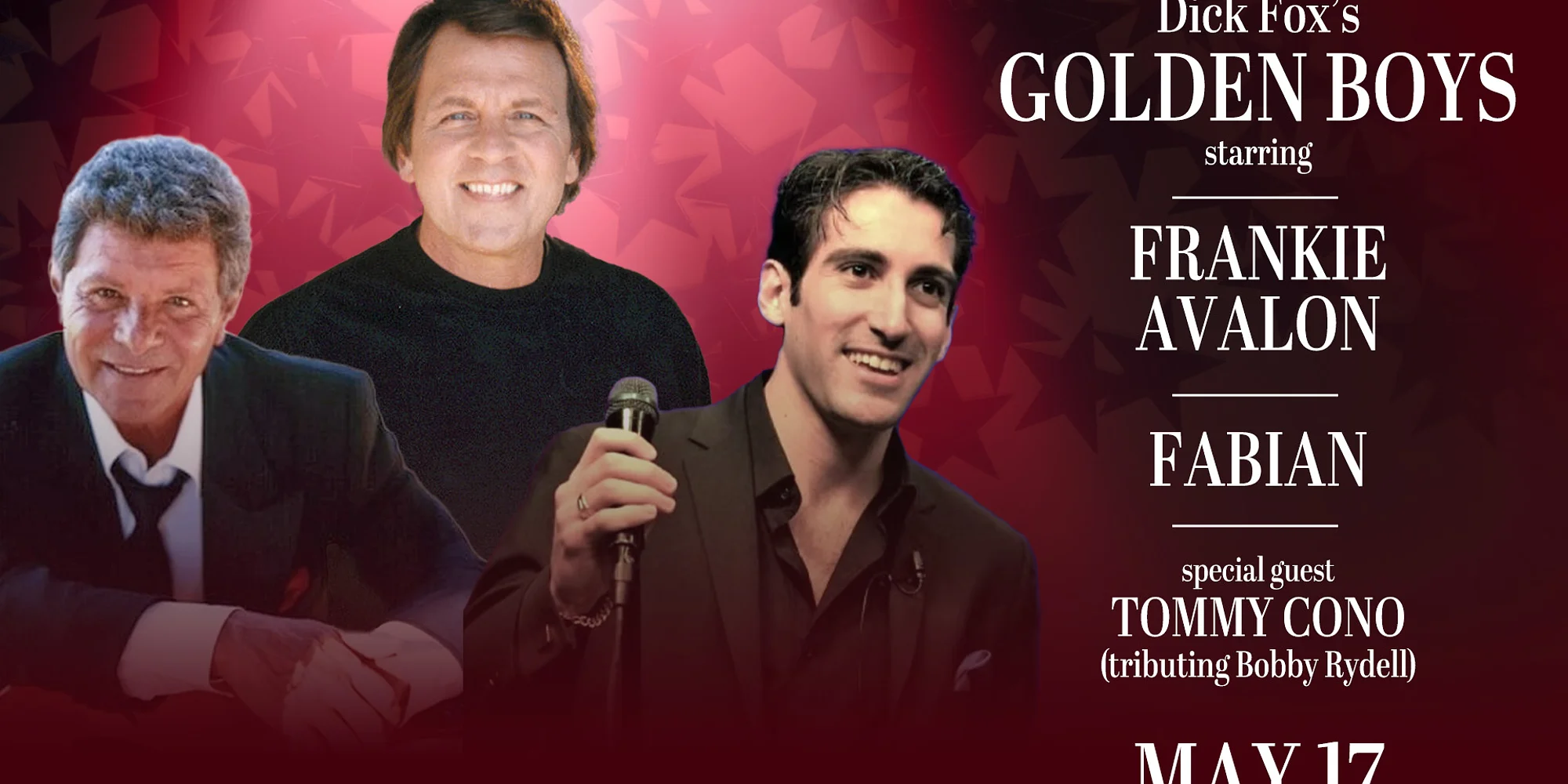 Tickets: $69 $79 $89 $99 Relive the magic of the golden era of rock ‘n’ roll with Dick Fox’s Golden Boys! This unforgettable concert event reunites beloved teen idols of the late 1950s and early 1960s — Frankie Avalon and Fabian, with special guest Tommy Cono (tributing Bobby Rydell) — for an evening packed with timeless hits, charm, and nostalgia. From Avalon’s chart-topping favorites like “Venus” and “Why” to Fabian’s energetic classics including “Turn Me Loose” and “Tiger,” audiences will be transported back to a time when rock ‘n’ roll ruled the airwaves. With the addition of Tommy Cono’s smooth vocals and dynamic stage presence, this show is a celebration of music that defined a generation. Dick Fox’s Golden Boys blends unforgettable songs, stories, and humor into a joyful trip down memory lane — reminding us why these performers became household names and fan favorites around the world. For certain concerts, audience members may prefer to stand or dance, especially when encouraged by the artist to do so. Guest expectations differ, so we simply ask all attendees to extend mutual respect toward one another and maintain awareness of those around them. Our staff will only intervene in matters of safety or when behavior is deemed unruly, combative, or disruptive to the overall performance.