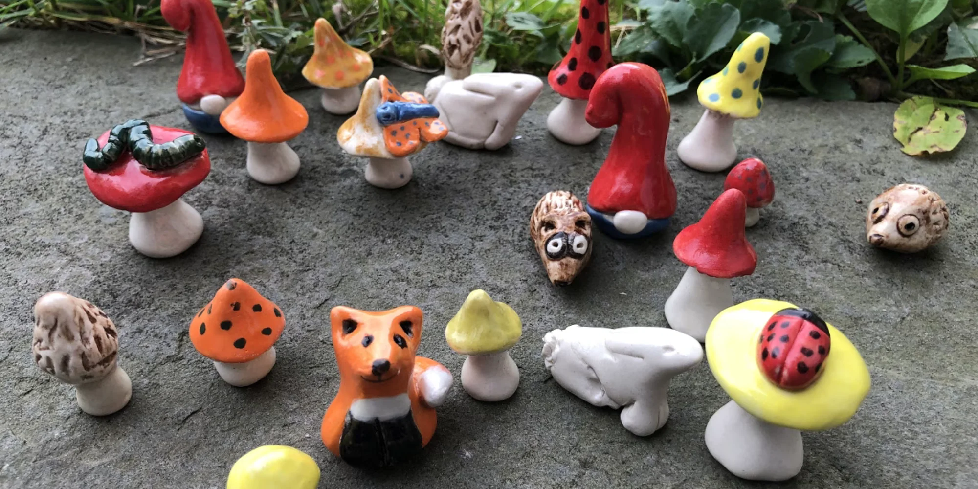 Get your fairy garden ready for spring! Kids ages 9-17 and their special adults are invited to make a dozen tiny clay decorations perfect for tucking in a potted plant, fairy garden, or just on a shelf. From mushrooms to animals to little gnomes, students will build and then paint their clay creations with colorful underglazes. Then instructor Sue Flanders will take home the projects to be clear glazed and fired in her studio so that they can take on anything the weather throws at them. Projects will be returned to ASI for pick up. Additional information: This is an intergenerational class intended for one youth ages 9-17 and an adult to attend together, while each working on their own projects. A $10 materials fee per student covers the materials and kiln firing. Advanced registration required.