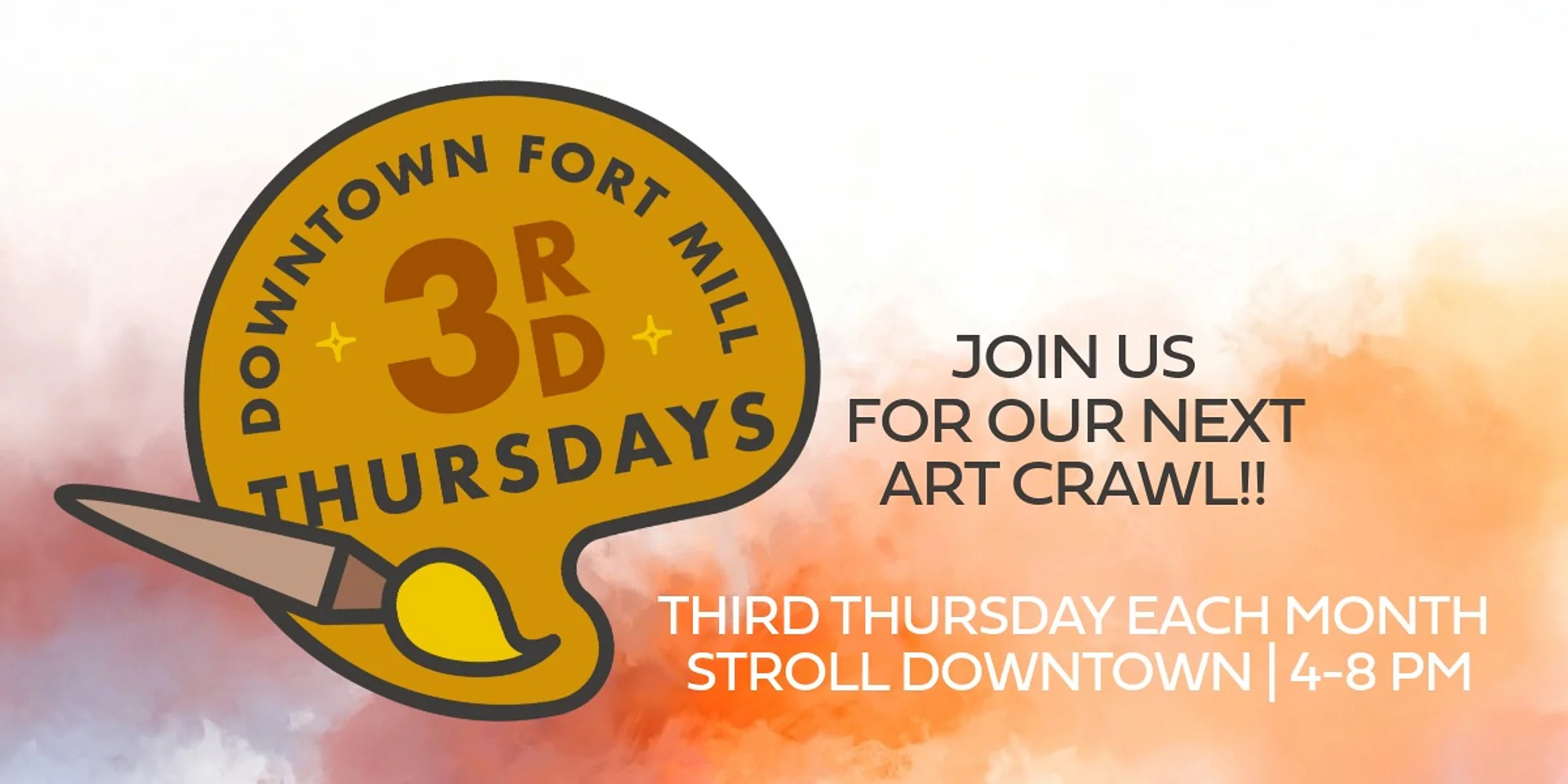 The Third Thursday of Each Month | 4–8 PM Experience an evening filled with creativity, connection, and community. Explore exhibits from over 30 local artists showcased across a variety of downtown businesses, and enjoy live painting, printmaking, pottery demonstrations, and other creativity throughout the evening. Don’t forget to look for QR codes on flyers and signage to guide your stroll and discover what’s happening next! Bring colleagues, friends, or family and be part of Fort Mill’s growing arts scene — a wonderful way to unwind, network, and support local talent. A Downtown Co-op of Fort Mill Community Event. https://www.downtownfortmillsc.com/events