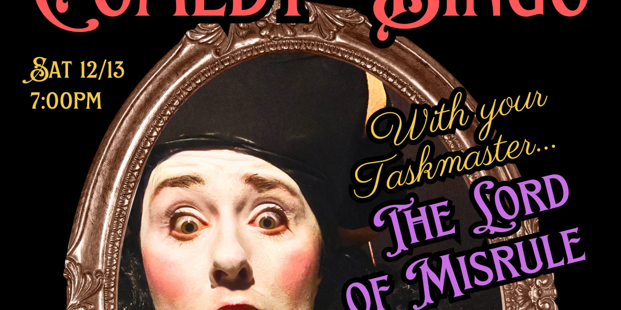 This month at Comedy Bingo Night: a special holiday taskmaster-themed edition, hosted by the Lord of Misrule! She will require that the improvisers complete a series of holiday themed tasks during an exciting game of Bingo. And featuring improv from Barbara, a Mother! Comedy, bingo, prizes, tasks — what more could you want?