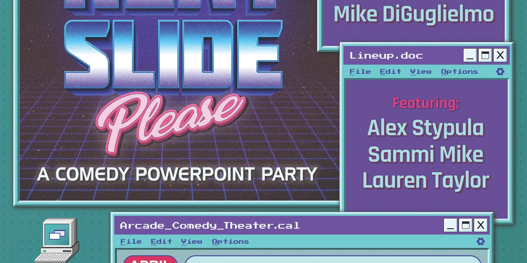 TED Talks are the pinnacle of public speaking. Meticulously designed to educate and inspire, all TED Talks are delivered by experts and intellectuals backed by a common mission: “Ideas Worth Spreading.” In the spirit of whoever that Ted guy is, “Next Slide Please” is a speaker series wherein five comedians present slideshows centered around a similar mission: “Niche Interests and Intrusive Thoughts That Should Maybe Be Kept To Yourself.” Join us on Friday, April 10th at Arcade Comedy Theater, as hosts Alyssa Moon and Mike DiGuglielmo curate and moderate a series of deep dives into the bizarre and alluring… the whimsical and provocative… or just something somebody thought was kind of neat. In addition to presentations by Alyssa and Mike, this seminar will feature Alex Stypula, Sammi Mike and Lauren Taylor— all sharing slideshows about anything and everything… or, perhaps, nothing.