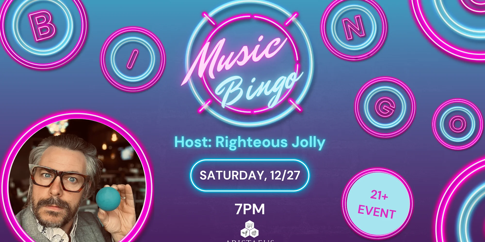 Join us for Music Bingo—a night of tunes, laughs, and a little friendly competition! Righteous Jolly will spin the songs, you’ll mark them off on your bingo card, and when you hit a row, shout out BINGO! Prizes for each game! This is a 21+ event.