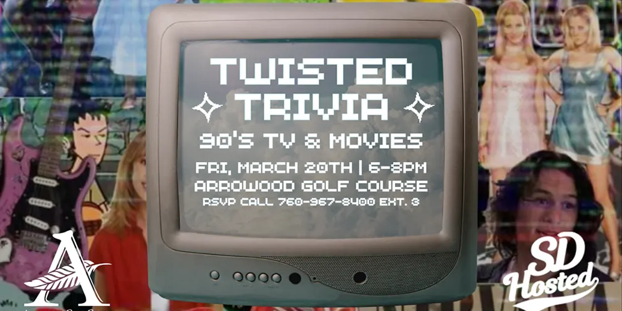 RSVP Call 760-967-8400 ext. 3 Twisted Trivia is going full rewind with a ’90s TV & Movies takeover. Think iconic quotes, legendary soundtracks, and the shows you raced home to watch. Bring your trivia dream team, order your favorite bites and brews, and see if your nostalgia game is truly the bomb dot com.