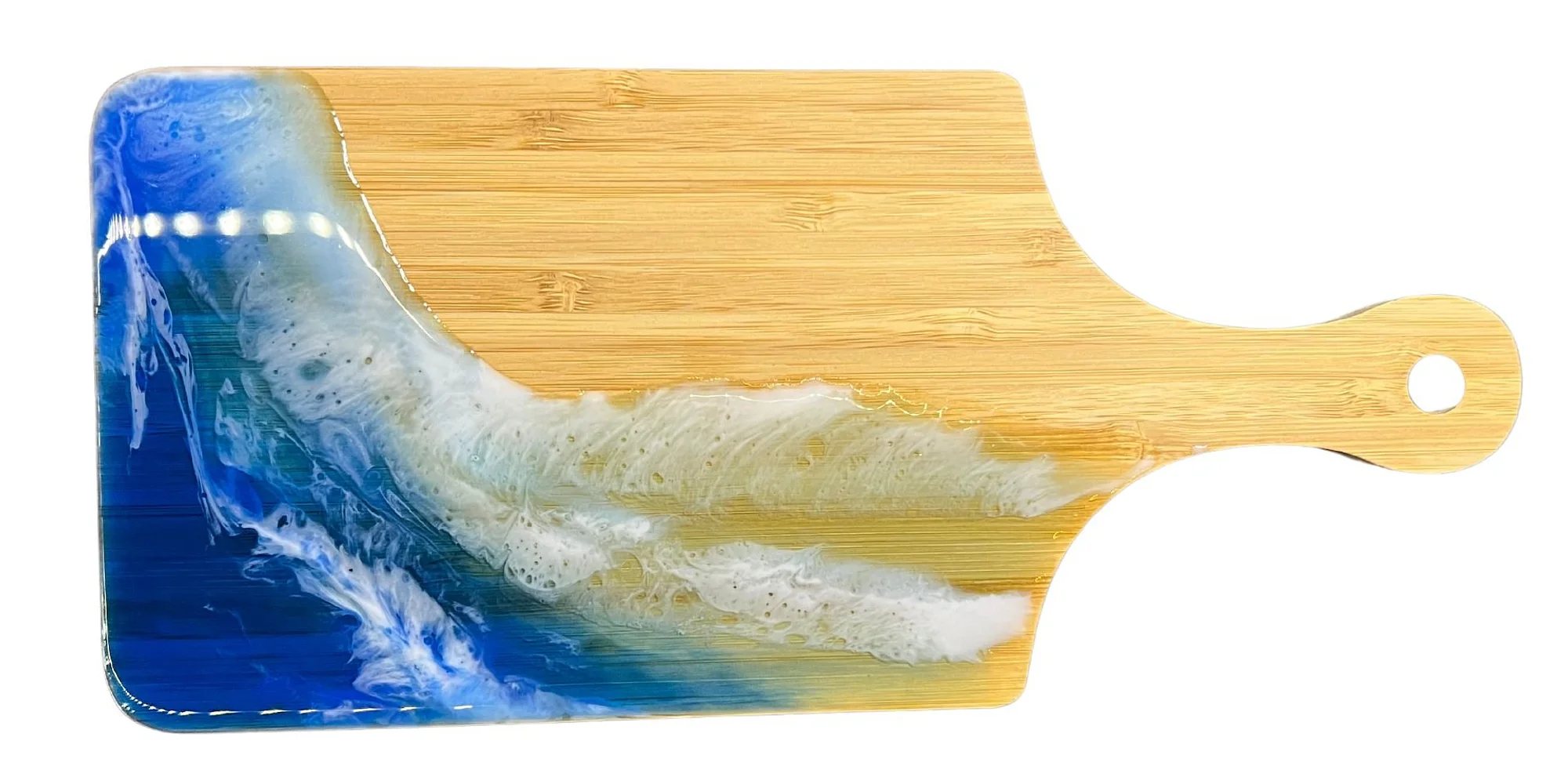 Create your own beach scene on an 11" charcuterie board using epoxy resin with artist Grace Noel in her studio! In this art class, we will create a beautiful beach scene on a charcuterie board that can be used in everyday life and special occasions. Plus you get to say "I made it!" when admirers inquire. Materials are included with ticket price! Materials included: Epoxy Resin Epoxy Resin Pigment Mica powder Bamboo charcuterie board Cups, gloves, cleaning wipes, apron In This Class You Will Learn: The resin process start to finish How to prepare space for a resin pour How to mix resin How to add color to resin once it's mixed Create a beach scene The best way to allow a resin pour to cure *Please note that due to dry times, you will need to come back the next day to pick up your creation Beginner friendly? YES! All skill levels are welcome, we will find a design for everyone. Family friendly? YES! Recommended for children 12 years and older. Please request accessibility needs in advance - email grace@gracenoel.art. Dates: 12/11 11AM-12:30PM 12/19 6-7:30PM 12/20 11AM-12:30PM