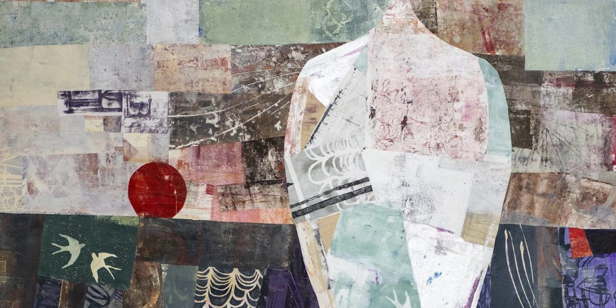 On view March 18-April 12, 2026 Opening Reception: Friday, March 20th, 2026, 5-9PM The show title Press On refers to the fact that Debra Livingston's art in this show began as a print produced on an etching press. As a printmaker for over 40 years, she has amassed a collection of etchings, monoprints, and monotypes. In a world increasingly dependent on computers and digital media, the etching presses used to print her art are not that different from those used by Rembrandt in 1650. For this show, Debra has recycled her old prints into new artworks by transforming them with drawings, collage, and encaustic wax. The title also encourages Debra to Press On and continue her artistic journey. Karen Wharton is a homebody who loves to travel. Travel fuels her imagination and reminds her how widely connected we are. Home is where Karen explores long-term, personal connections with the people she loves. Art is how Karen holds both ideas at once: the vastness of the world and the intimacy of everyday life. She notes, "Honest, authentic art connects us as human beings." A trip to Japan in 2024 reopened her eyes to the quiet grace of ceramic vessels from all over the world. Some paintings in this show focus directly on these vessels. Others are simple tributes to the rhythms, shapes, and colors. Most of the paintings integrate her hand-painted monoprint collages, created with a Gelli Plate and a variety of printing techniques. Karen hopes these paintings bring the world home. Banner Image: Karen Wharton, “Steady.”