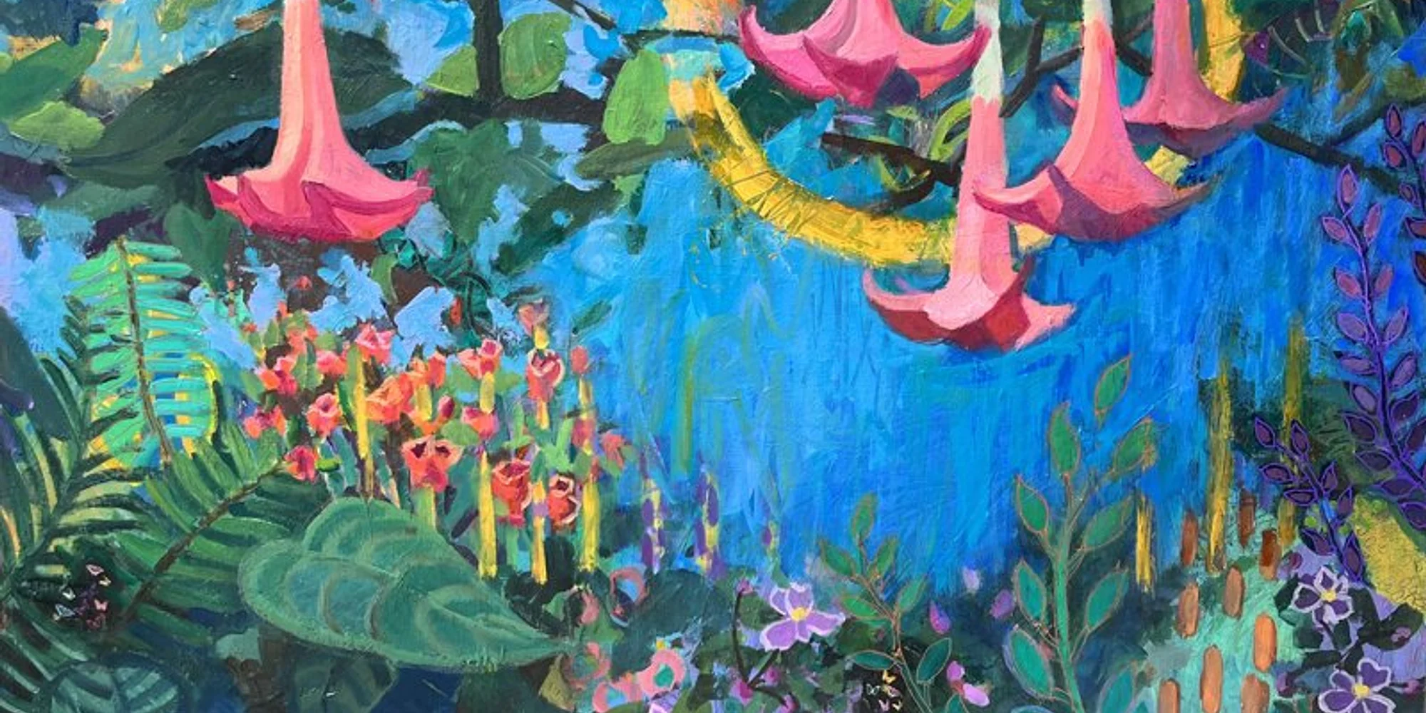 Artists on Santa Fe at 747 Santa Fe Drive welcomes guest artist Jeannie Paty for an exhibition of new paintings entitled “Sun-Drenched Color in Bloom: Abstracted Florals & Botanicals — The Essence of Place,” running March 20 – April 12, 2026. Inspired by travel, gardens, and the cooling blues of water, these luminous works translate “color memories”—sun on petals, reflected light, and the feeling of exploration—into layered, expressive abstraction. The public is invited to an opening reception on March 20, 5-8 p.m., during Third Friday at the Art District on Santa Fe, the First Friday Art Walk on April 3, 6–9 p.m., and to view the show during regular gallery hours. Paty is excited to showcase her recent pieces from a concentrated period of studio work giving the show a strong thread of energy and cohesion. Rather than focusing on one location, she invites the viewer into the bright, floral, and emotionally resonant colors that conger a sense of aliveness, connection, and possibility. This collection offers a chance to slow down, look closely, and experience color as a mood and a place. As she explains, “Each painting begins as a color memory—sunlight on petals, the cooling blue of water, and the feeling of being fully awake in a place—and becomes an abstracted floral that’s more about essence than description.” Banner Image: Jeannie Paty, “Garden of Metamorphosis.”