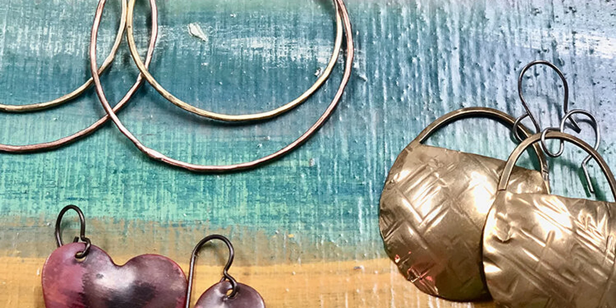 Saturday, December 6th from 1:30PM-7:30PM Participants will be guided through jewelry-making basics, from selecting materials, tool use, and safety to cutting and shaping metal to oxidizing and soldering pieces. Make up to four sets of earrings from scratch–textured studs, silver hoops, hammered brass, and torch-fired enamel copper. This course has a $35 materials fee, including handouts to re-create your favorites at home, earring cards, and boxes for gift giving. Beginner level. $99 workshop fee does not include materials. The $35 materials fee is paid to the instructor at the beginning of the workshop. (For safety, be sure to wear closed toe shoes and have long hair pulled back with clips or in a ponytail.) We will have a 20-minute break, so feel free to bring a snack. Laura’s workshops are open to teens ages 13 and up when accompanied by a parent. About the instructor: Laura Jamison of LJ Studios Metalsmith is an instructor from New Hampshire. Click here to view our cancellation policy.