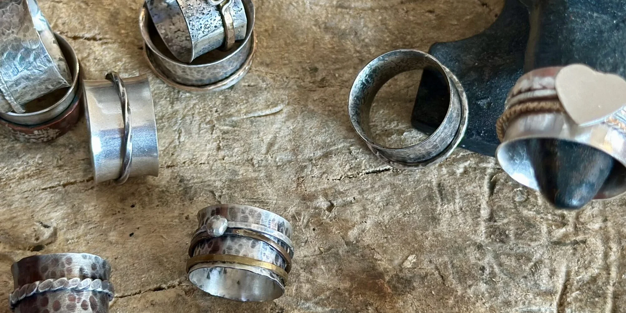 Saturday, July 11th from 1:30PM-7:30PM This workshop will guide you through the fundamentals of the metals studio, including tools, safety, soldering, filing, and sanding, to help you create a beautiful and unique spinner ring. This course is suitable for beginners, and there is a $40 materials fee, which will provide you with everything you need to complete your spinner ring. $99 workshop fee does not include materials. The estimated materials kit is $40* and will be available to purchase from the instructor at the beginning of the workshop. *NOTE: This is an approximate cost and actual kit cost may be different due to the metals market fluctuation in 2026. (For safety, be sure to wear closed toe shoes and have long hair pulled back with clips or in a ponytail.) We will have a 20-minute break, so feel free to bring a snack. Laura’s workshops are open to teens ages 13 and up when accompanied by a parent. This class will be held in our new location at 138 Bayview Street, Yarmouth, ME. About the instructor: Laura Jamison of LJ Studios Metalsmith is an instructor from New Hampshire. Click here to view our cancellation policy.