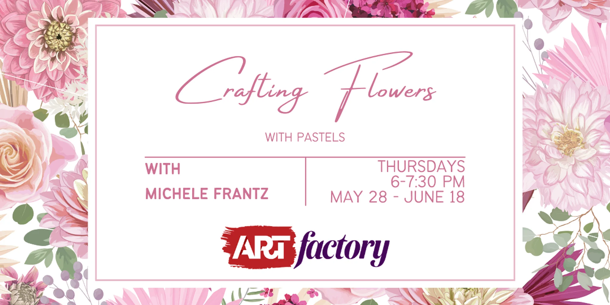 If you love vibrant color, you will love pastels! Dive right in without needing paintbrushes, solvents, or a palette – no other medium allows you to apply rich color as quickly as soft pastels. We will be exploring the shapes and colors of flowers in both landscapes and still life settings. Paper will be provided via the Paper Fee, and additional supplies can be purchased by selecting the option at checkout. Returning students can use their supplies from previous classes. Thursdays 6-7:30 pm May 28 – June 18 For ages 15 & up. Tuition: $114 Paper Fee: $5 Optional Supplies: $10