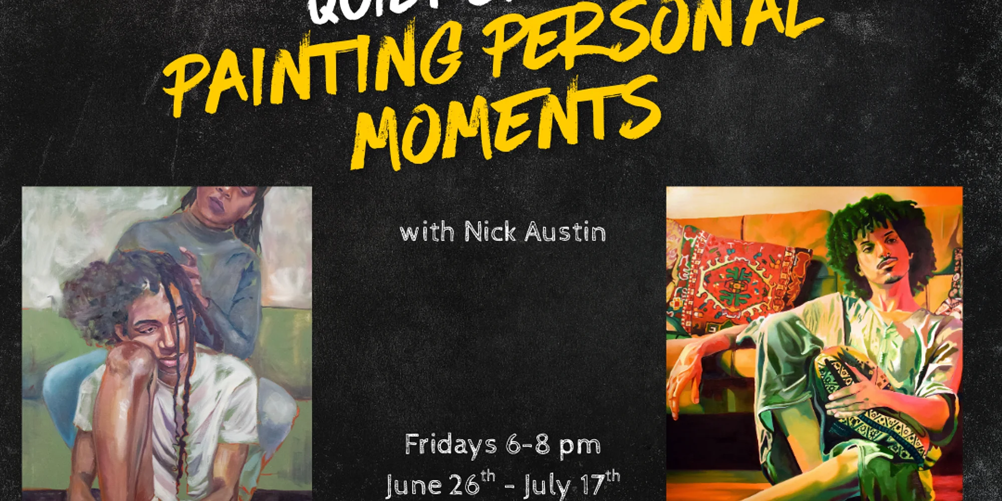 This class invites students to paint intimate scenes inspired by memory, relationships, and everyday life, with an emphasis on mood and emotional clarity over technical precision. Working in acrylic, students will translate personal moments into visual scenes through thoughtful composition, cropping, and simplified forms. The course explores how interiors and personal spaces can act as emotional containers, and how color, atmosphere, and figure/environment relationships contribute to meaning. Students will develop one or two small-scale paintings over the course of the class, refining cohesion and narrative focus, and will conclude with a supportive group critique centered on emotional resonance and visual connotation. All supplies will be provided via the supply fee. Ages 13-18 Fridays 6-8 pm June 26 – July 17 Registration Fee: $152