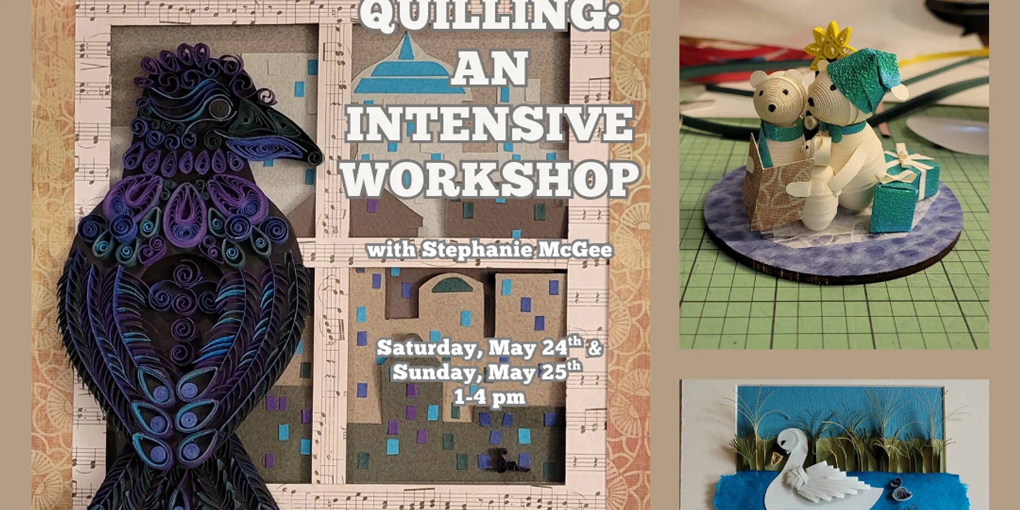 Quilling, or Paper Filigree, is the ancient art of creating designs by cutting and coiling thin strips of paper. In this intensive two-day workshop, you will learn the basic techniques and come away with a unique piece of paper art! The first three-hour session on Saturday will introduce you to the history and basic tools and methods of this unique art form. Reading glasses are recommended for those with limited vision. The second session on Sunday will be a concentration on techniques and more advanced tools of Quilling, Paper Filigree. We will explore techniques of different paper artists to expand your skills and understanding of this exciting art form. Artists of any level are not only welcome but encouraged to attend! Ages 15+ Saturday, May 23rd and Sunday, May 24th 1-4 pm Registration Fee: $114 Supply Fee: $5