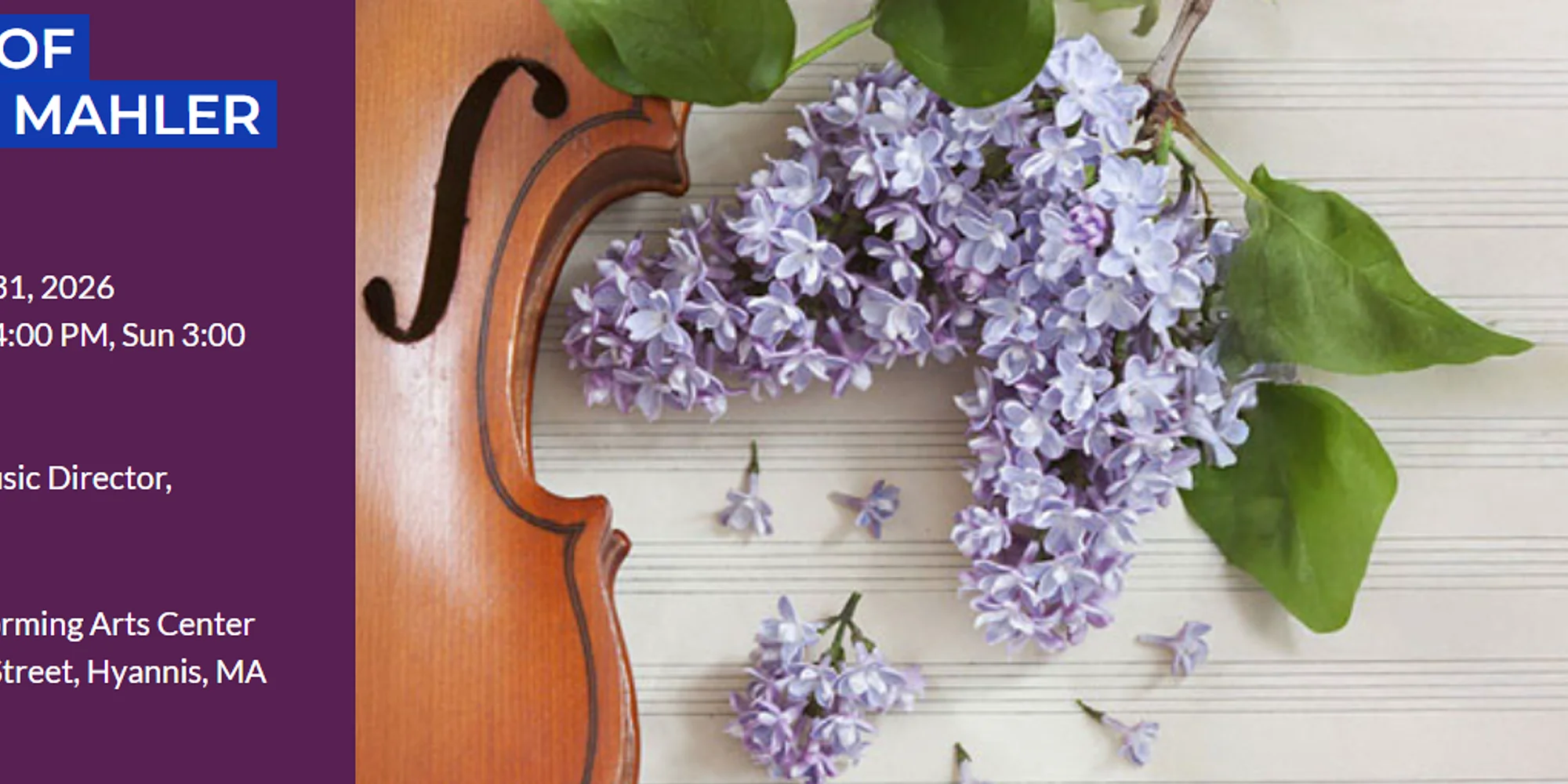 Date: May 30 & 31, 2026 Showtimes: Sat 4:00 PM, Sun 3:00 PM Masterpiece 5 Celebrate the vibrant spirit of spring with your Cape Symphony Orchestra. This program will awaken the senses and conjure the season of renewal in all its shades of beauty. Lili Boulanger’s D’un matin de printemps shimmers with youthful energy and the brightness of a new day, setting the stage for Debussy’s languorous, dreamy Prelude to the Afternoon of a Faun, a masterpiece of impressionistic color and sensuality. After intermission, Mahler’s monumental Symphony No. 5 unfolds—a journey from darkness and grief to hope and triumph, culminating in the radiant beauty of its famous Adagietto. Let the power and poetry of these works transport you in this brilliant Masterpiece series finale. Music Director Alyssa Wang will conduct. Ticketholders are invited to our “Musically Speaking” talk about the concert program. The talk begins one hour before the concert and will be led by Assistant Conductor Joe Marchio. Tickets available at: https://www.capesymphony.org/buy-tickets-voices-of-spring