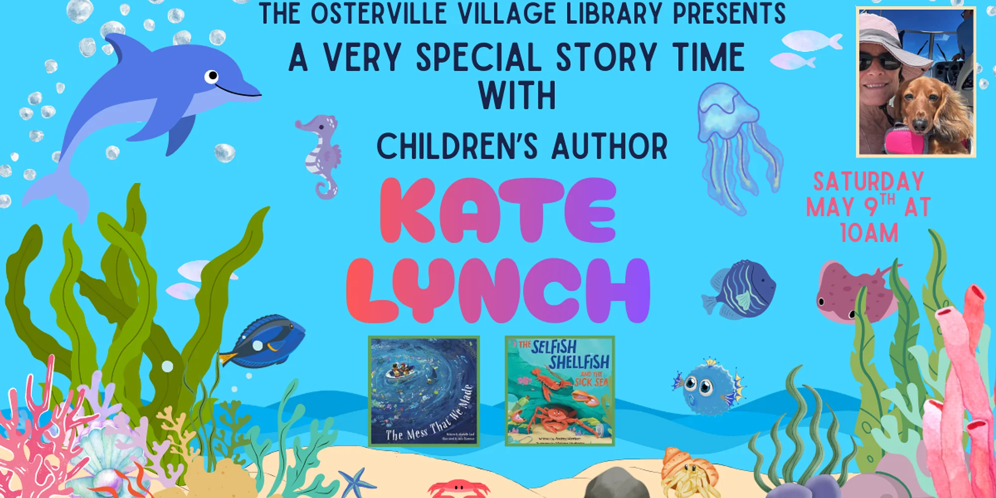 Children’s Story Time with Local Author & Conservationist Kate Lynch Saturday May 9th at 10am Osterville Village Library. Local children’s book author and ocean conservationist, Kate Lynch will have a short presentation on the awareness of plastics, trash, and marine debris on our ocean animals here on Cape Cod and how you can help. She will read two picture books on this theme and handouts to create your own up cycled art project at home or school to bring awareness to the trash that can’t be recycled or reused. Enjoy this fun children’s story time on Saturday May 9th at 10am in the Lillian Dixie Morton Children’s Room at the Osterville Village Library. For more information please contact Amy Wolfe at awolfe@clamsnet.org or by calling the OVL directly at (508)428-5757