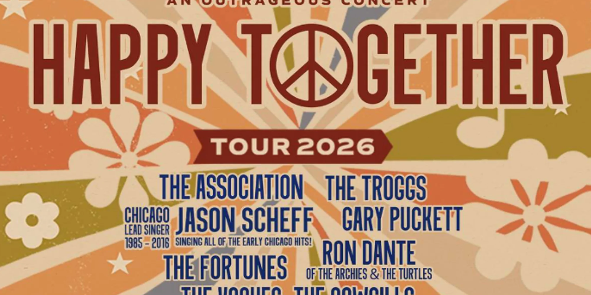 Happy Together Tour with The Association, The Troggs, Jason Scheff, Gary Puckett, The Fortunes, Ron Dante, The Vogues, Cowsills All Ages Tuesday, June 09, 2026 Doors: 6:00pm Show: 7:00pm THE “HAPPY TOGETHER” TOUR 2026 LINE-UP FEATURES RETURNING FAVORITES & NEW ADDITIONS: THE ASSOCIATION, THE TROGGS, CHICAGO lead singer 1985-2016 JASON SCHEFF, GARY PUCKETT, THE FORTUNES, RON DANTE from The Archies & The Turtles, THE VOGUES & THE COWSILLS. 2026 will mark the 17th year of the highly successful, hit-filled summer package, THE “HAPPY TOGETHER” TOUR. The touring sensation that has crisscrossed the nation delighting audiences for over a decade & a half returns this summer with a show full of chart-topping hits from the ‘60s & ‘70s – an undeniable 60+ BILLBOARD Top 40 smashes. The Tour is once again joined by THE ASSOCIATION, THE TROGGS, CHICAGO lead singer 1985-2016 JASON SCHEFF, GARY PUCKETT, THE FORTUNES, RON DANTE from The Archies & The Turtles, THE VOGUES & THE COWSILLS. ALL SALES ARE FINAL. There are no refunds or exchanges. VENUE POLICIES Stage will rotate for this performance. VENUE SEATING MAP To access the best seats before the public at the best discount, JOIN THE CLUB For wheelchair accessible seating and additional seating options, please call box office at 508-775-5630. Tickets available at: https://www.melodytent.org