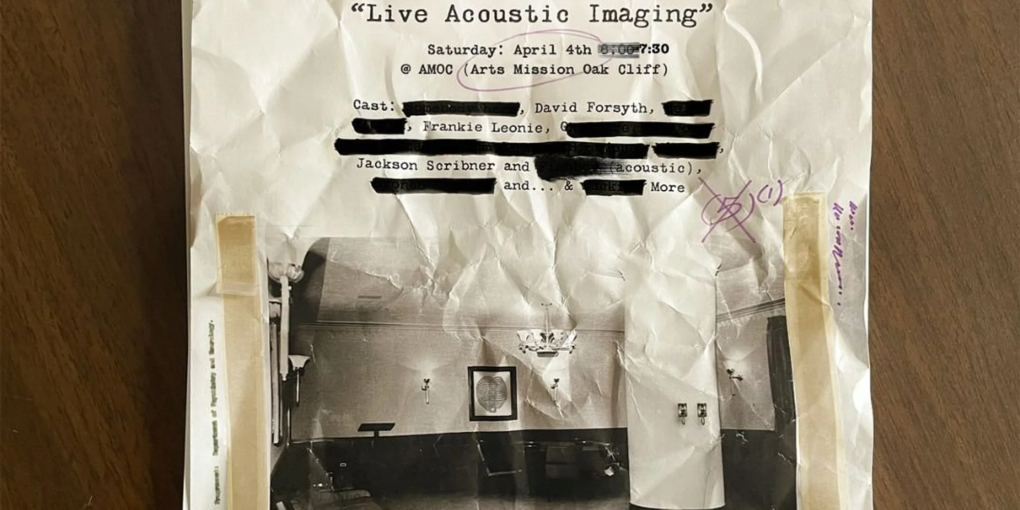 Distance & Volume: Live Acoustic Imaging comes to Arts Mission Oak Cliff on Friday, April 4th at 7:30 PM with a simple premise: flip the room and rethink the way we listen. April 4 | 7:30 PM | $10 Distance & Volume: Live Acoustic Imaging April 4 | 7:30 PM | $10 Led by David Forsyth alongside Frankie Leonie, Jackson Scribner, and special guests, this immersive acoustic performance places the artists around the edges of the space while the audience gathers in the center. The lights stay low and the volume stays restrained. There is little to no amplification, just voices, wood, strings, and harmony traveling naturally through the room. The songs chosen are the ones that cut deepest, the ones that felt unavoidable when they were written. Performers may subtly weave into one another’s moments, adding harmony or texture, but the focus remains on intimacy and intention. There is no spectacle and no hiding, just sound moving in real space. Imagine sitting on a living room couch while a great singer wails softly from the kitchen, close enough to feel and far enough to float. Bring a pillow. Come lay down. Tickets About the Artist David Forsyth is an experiential songwriter event that creates a live 3D acoustic image from the vantage point of a reclined position. Instagram: @di.forsyth | @frankie.leonie | @scribnerjackson