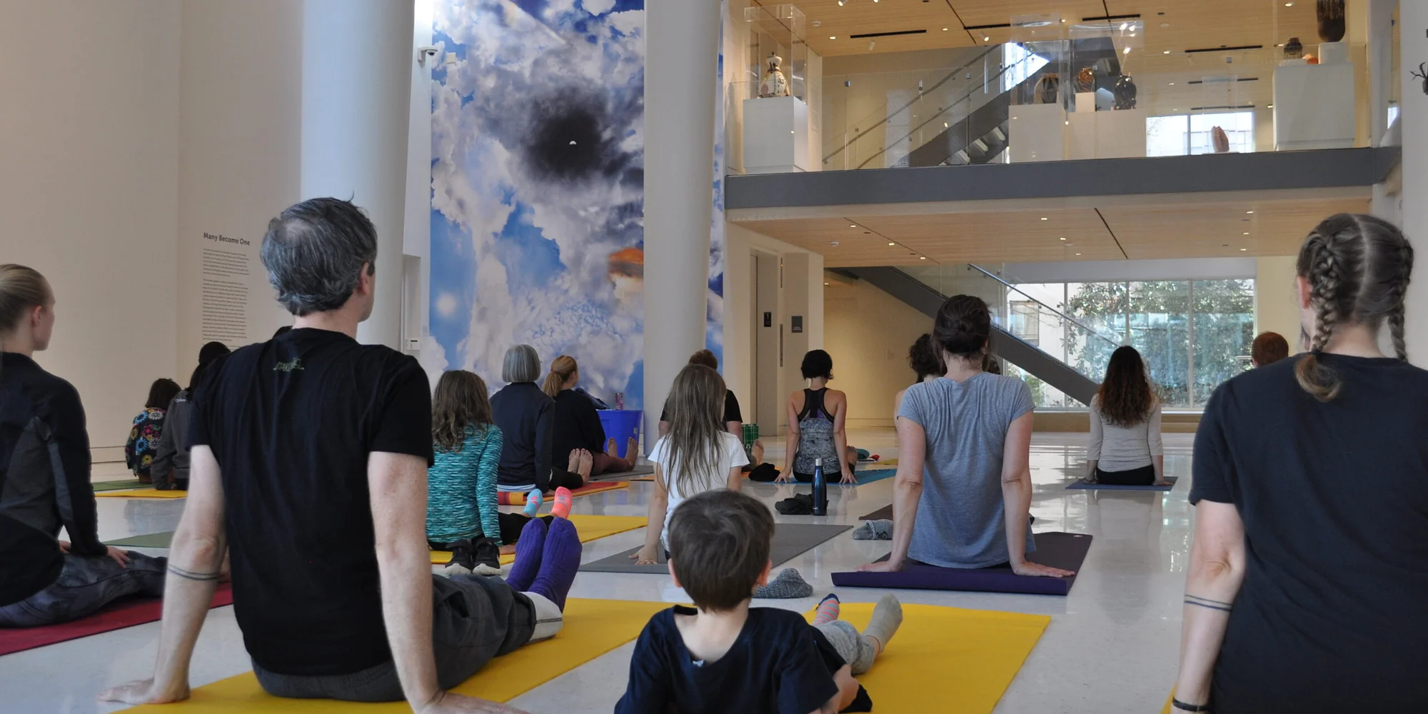 Join us at the Museum for a harmonious blend of artistic inspiration and mindful movement! Our Saturday sessions are from 9:30–11am on January 24, February 21, March 28, April 18, May 23, and June 20. Experience how close looking at art and practicing yoga in the beautiful spaces of the Museum can foster relaxation and connection. Each class pass and yoga session includes a guided mindful looking session in one of the Museum’s current exhibitions. After class, you’re invited to the John & Robyn Horn Education Center (level 3) for a complimentary cup of tea and artful conversation. All levels are welcome. Please bring your own yoga mat. No mat, no problem, the Museum has some extra mats to lend. Loose-fitting clothing is recommended, ensuring ease of movement as you flow through your practice. Benefits: Mindful Connection: connect with the present moment as you flow through your practice in relation to a thought-provoking artwork. Artistic Inspiration: take advantage of practicing yoga in one of the most inspiring interior spaces in Asheville. Fuel your creativity and enhance the mind-body connection while meeting other artful yogis. Practical Tips: Arrive a little early to settle into the Museum’s ambiance and find your preferred spot in the gallery. Space is limited; advance registration is required. The Art of Yoga series is taught by certified yoga instructors and Museum staff. For more information, email learn@ashevilleart.org or call 828.253.3227 x121. Register Now
