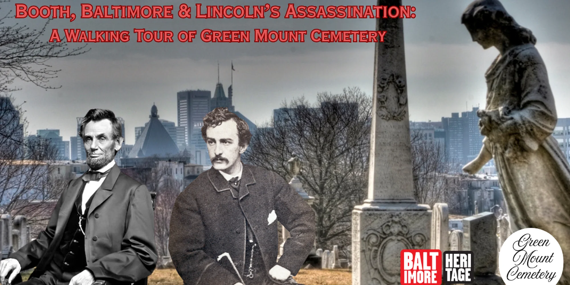 Join us at Green Mount Cemetery to discover the tangled history of John Wilkes Booth, Baltimore, and the plots to kidnap and assassinate Abraham Lincoln. We’ll trace Booth’s childhood on Exeter Street and how he followed his Shakespearean-trained father’s footsteps into the theater world. We’ll get to know Booth–the womanizer, the white supremacist, and the presidential assassin. We’ll also revisit major events of the Civil War, including the Pratt Street Riots and the surrender at Appomattox, and how they influenced the conspirators’ actions leading up to the day Booth murdered Lincoln. As we walk, you’ll hear about the events of the fateful day and the fates of the Booth’s co-conspirators. And of course, we’ll see the unmarked burial site of Booth and the graves of two of his co-conspirators. We hope you’ll walk to the grounds of Green Mount Cemetery with us to discover this poignant history in a whole new light. Accessibility: Although there are some paved pathways, we will be walking over mostly uneven grassy terrain and cobblestones.