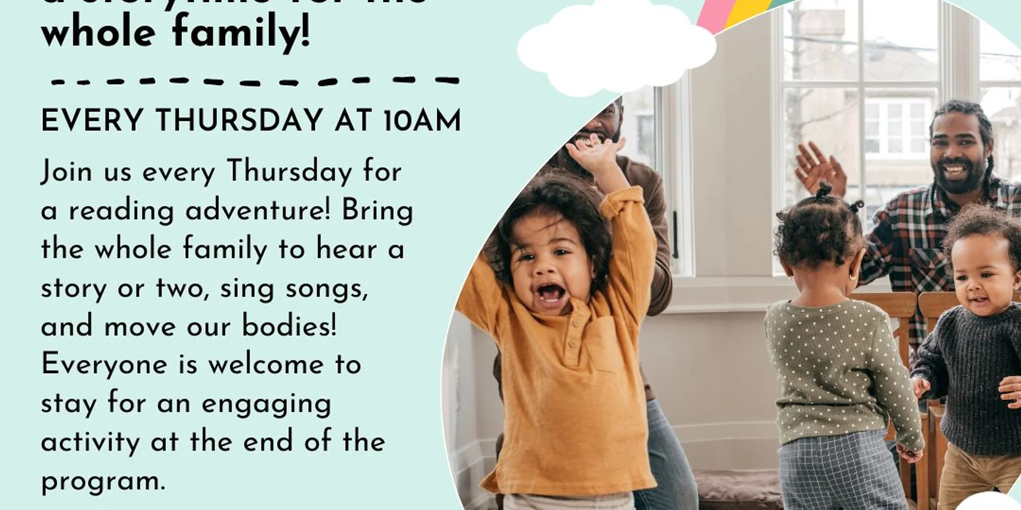 Join us every Thursday for a reading adventure! Bring the whole family to hear a story or two, sing songs, and move our bodies! Everyone is welcome to stay for an engaging activity at the end of the program.