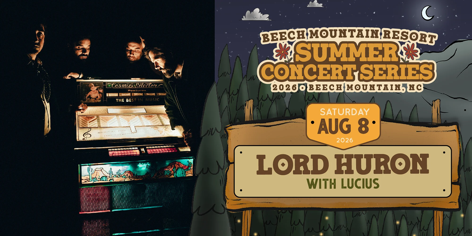 Show Information Beech Mountain Resort welcomes Lord Huron with Lucius to the stage for the final show of our Summer Concert Series. All Ages Welcome: Children 5 and under are admitted free with a paid adult. Doors & Schedule: 4:30 p.m. – VIP Doors Open & Food Truck Village 5:30 p.m. – General Admission Doors Open & Food Truck Village 7:00 p.m. – Main Stage Show Start (Set times are subject to artist discretion) Tickets: All tickets are general admission. VIP tickets include priority stage-front standing room.