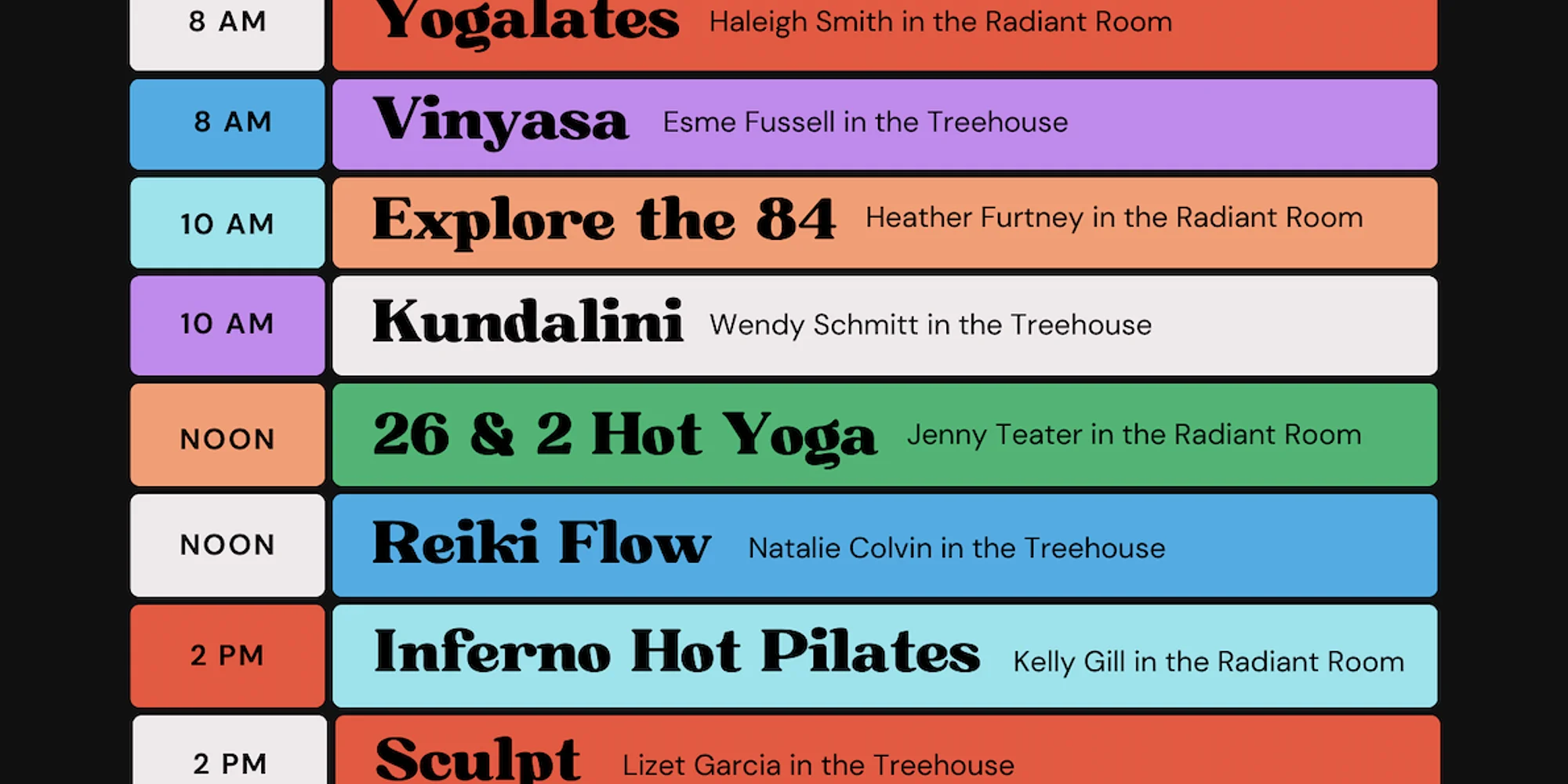 26+2 Hot Yoga (Bikram) • Inferno Hot Pilates • Vinyasa • Nidra • Sculpt • Sound Baths • Kundalini • Yin • Restorative • Workshops •