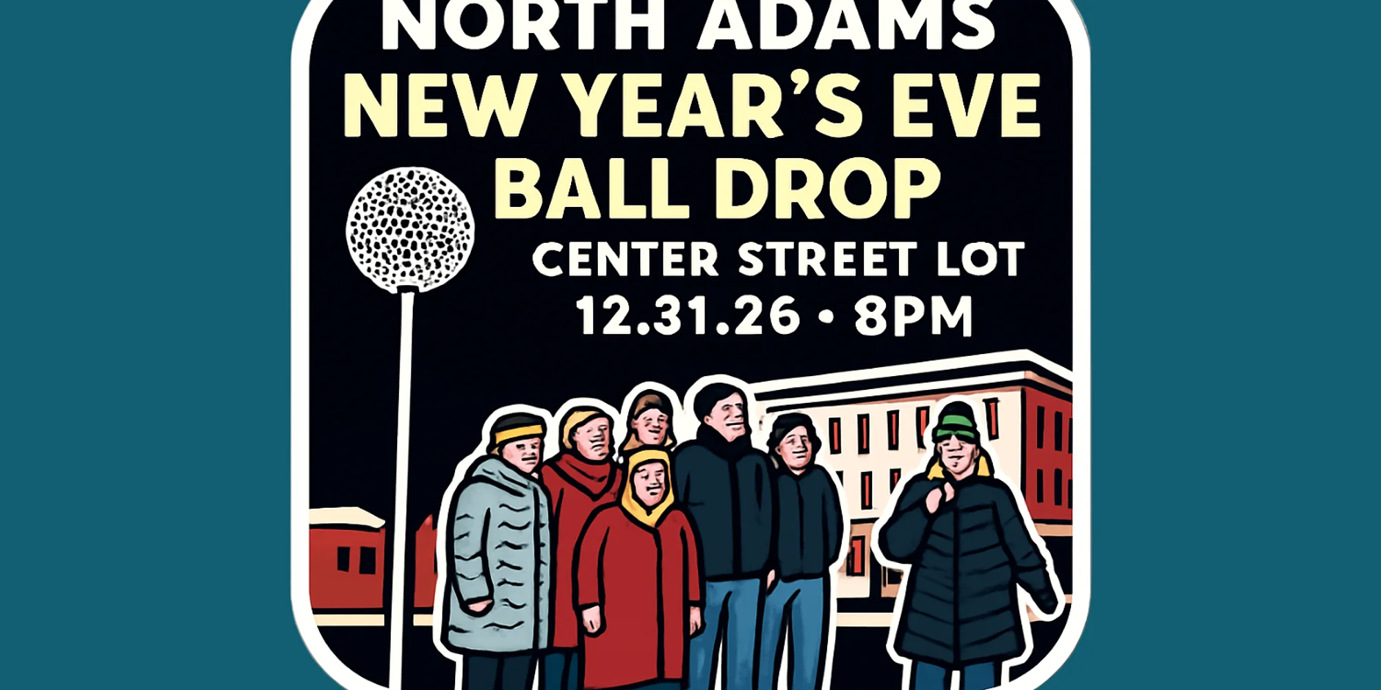 Join us for the 4th Annual New Year's Eve Ball Drop in North Adams with Mayor Macksey! This is a kid-friendly event and free to the public! We will gather in the Center Street parking lot behind 85 Main Street where residents can grab New Year's Eve swag and help count down to the New Year! The ball will drop at 8 pm rather than midnight for all to enjoy and then still be able to make it to your New Year's Eve gatherings. We thank North Adams Sheet Metal for creating and donating this beautiful New Year's Ball. Thank you to North Adams Wire & Alarm, North Adams Police Department, and Libby Macksey for helping bring this event to life. For more information on the New Year's Eve Ball Drop contact the Office of Tourism & Community Events at tourism@northadams-ma.gov