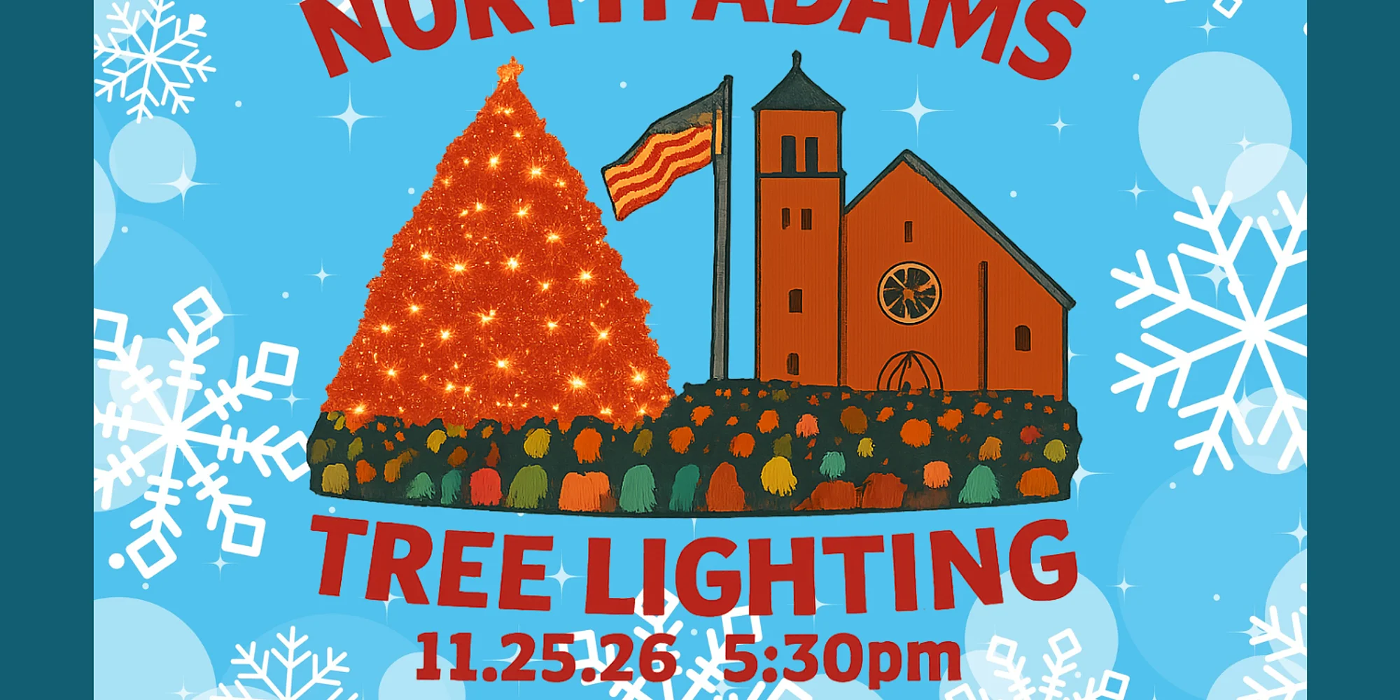 On the evening before Thanksgiving join hundreds of festive faces as North Adams gears up for the holiday season with the annual Tree Lighting Ceremony and Hometown Holidays kick-off event! A crowd will gather around the tree at Monument Square on Main Street (between the First Congregational and First Baptist Churches), and count down the seconds until the switch is thrown and thousands of twinkling lights adorn the downtown. After the ceremony, Santa always makes a special visit with free goodie bags for the little ones. Please be aware of the following street closures for this event: Monument Square closed by 4 pm, reopening at 6:30 pm or after vendors/people clear out.