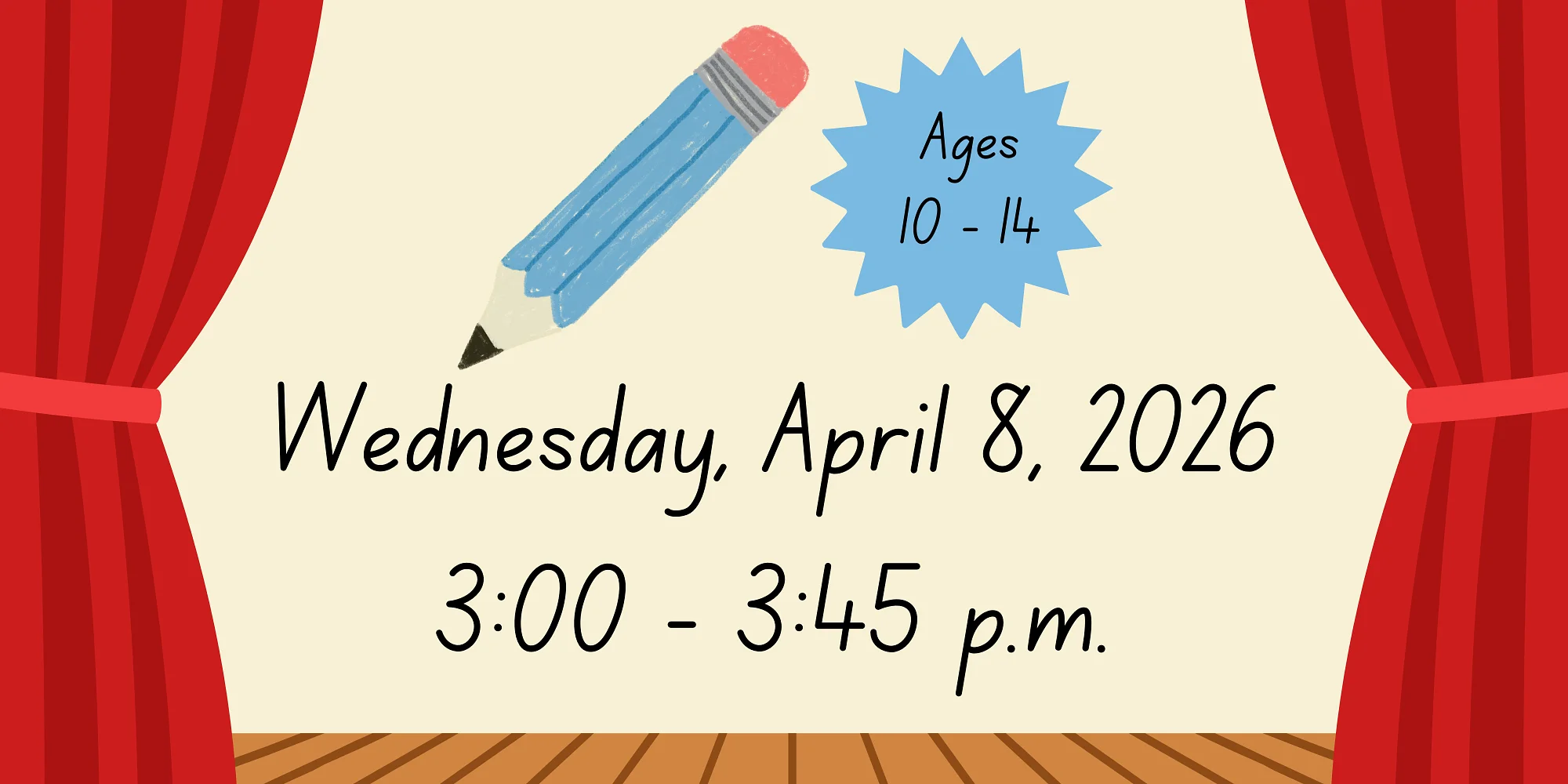 Come join us for some theatrical fun in the sun! We will create characters and perform skits that participants will improvise. This activity is for ages 10-14. We hope that you’ll stop by and participate in this no-pressure improv session! Presented by our Junior Librarians.