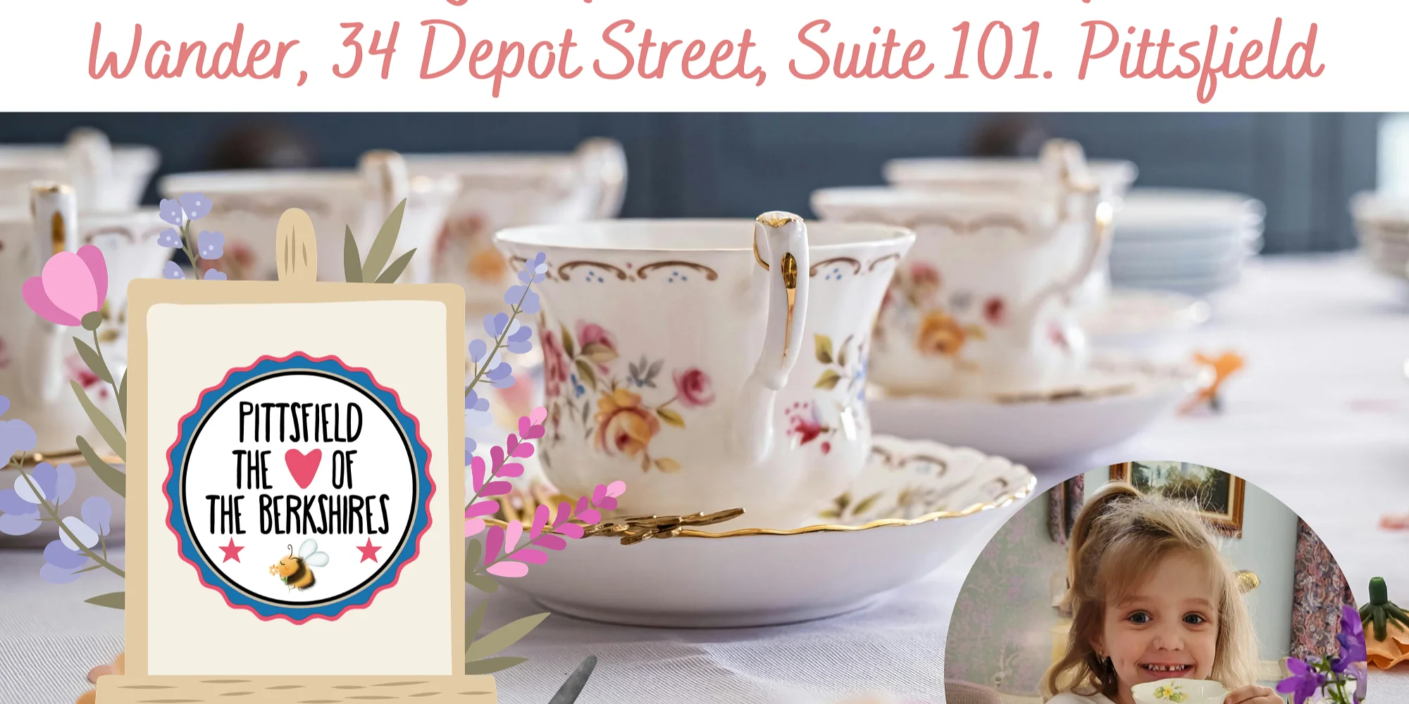 Downtown Pittsfield, Inc. (DPI) will host a free Downtown Celebrates Spring Children’s Tea Party and Paint & Sip on Sunday, April 19, from 2 to 4 pm at WANDER Berkshires, 34 Depot Street, Suite 101 in Pittsfield. This free Spring-themed Tea Party and Paint & Sip is best suited for ages 3 to 12, although younger and older children are welcome. There will be free lemonade and cookies for the kids, and there will be coffee and tea for the grown-ups available for purchase. All materials for the Paint & Sip will be provided. Children are welcome to drop in anytime over the course of the event, and all children must be accompanied by an adult. This program is supported by The Feigenbaum Foundation, Downtown Pittsfield, Inc., and WANDER Berkshires.
