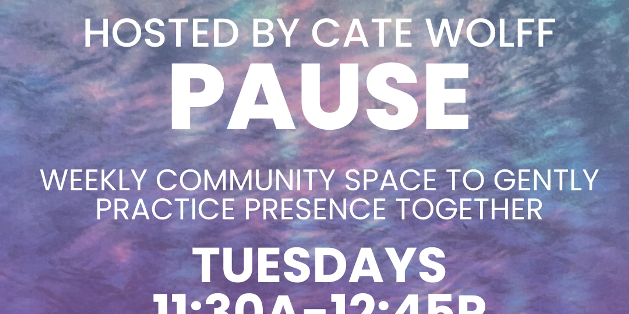 Tuesdays beginning April 7 | 11:30–12:45 In times of chaos and upheaval — and really, anytime — it is a radical act of sanity to take up residence in the present moment. Taking a pause… slowing down… allowing the nervous system a break from constant input… is a powerful form of self-care. The Sacred Pause is a weekly community space to gently practice presence together. Each gathering will include: • simple mindfulness practices • a brief, accessible reflection on topics like  – how mindfulness works  – common misunderstandings  – why it can be hard to stay present • space for quiet connection No experience is needed. Come a little early to grab a drink or some food. Stay for the full time or just drop in for what you can. Cate Wolff is a psychotherapist in Pittsfield, a trauma-sensitive yoga teacher, and a long-time meditation practitioner who first learned mindfulness from Jon Kabat-Zinn. Free and open to all. Goodwill donations welcome for Wander.