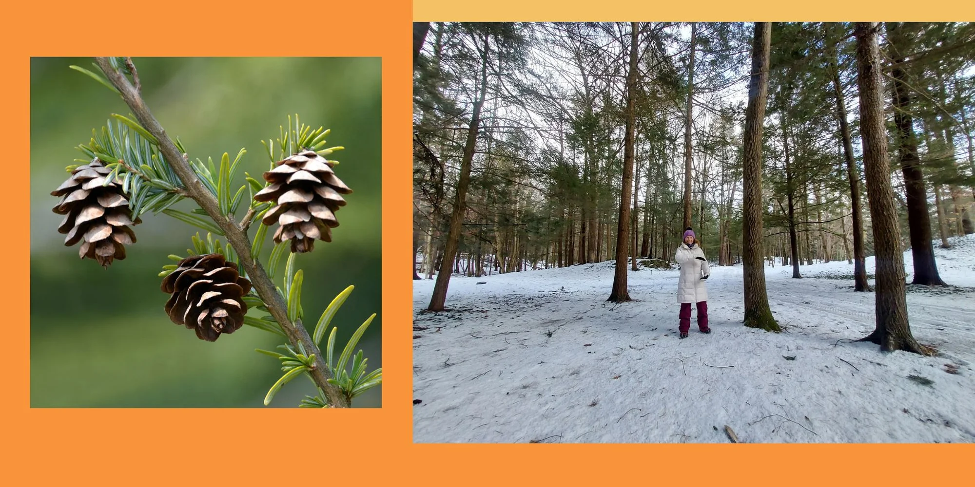 Enliven your senses, refresh your mood, and boost your immune system with Forest Bathing and Tai Chi among the verdant forests at The Mount. Mary Hannah will guide you in easy to follow Tai Chi movements to cultivate vitality and a walking meditation to experience “The art of connecting with nature through our senses” – Dr. Qing Lin, Chairman of the Japanese Society for Forest Medicine By allowing space to be present in nature and move with nature, we awaken not only our senses but also wonder, curiosity and our innate capacity for healing. Nature offers us soothing sounds, stable ground, and expressions of harmony that guide us home to experience these qualities within ourselves. Pre-registration by email is encouraged: maryhannah.parkman@gmail.com Park in Upper Lot and meet by the Ticket Booth. This program covers approximately 0.5 miles on mostly level or gently sloping trail. Dress for the weather in warm layers suitable for movement. Warm sturdy footwear is recommended — Micro-spikes are suggested on icy terrain. This program may be cancelled in the event of severe inclement weather. Pre-register with Mary Hannah to receive notification of any changes to this program. $20 per person. Payment accepted by cash or Venmo @maryhannah-parkman (code: 0285) Mary Hannah Parkman is a certified Tai Chi Instructor and Yoga Teacher, drawn to both by the nature-inspired movements and the dance between grace and strength. After practicing Tai Chi and Qi Gong for 10 years, she earned her first Tai Chi certification in 2023. When Mary Hannah teaches Tai Chi, she draws on over a decade of experience as a mind-body movement instructor, teaching yoga in studios, wellness resorts, public schools, summer camps and leading mindful outdoor experiences. She delights in sharing the peace, vitality and inspiration that comes from being in nature through her teaching and artwork. Mary Hannah also volunteers to support conservation efforts for Eastern Hemlock trees. Learn more about Mary Hannah Parkman: https://maryhannahparkman.com/ https://www.facebook.com/mary.h.parkman/ https://www.instagram.com/maryhannnah/?hl=en Hemlock cones photo courtesy of sciotogardens.com