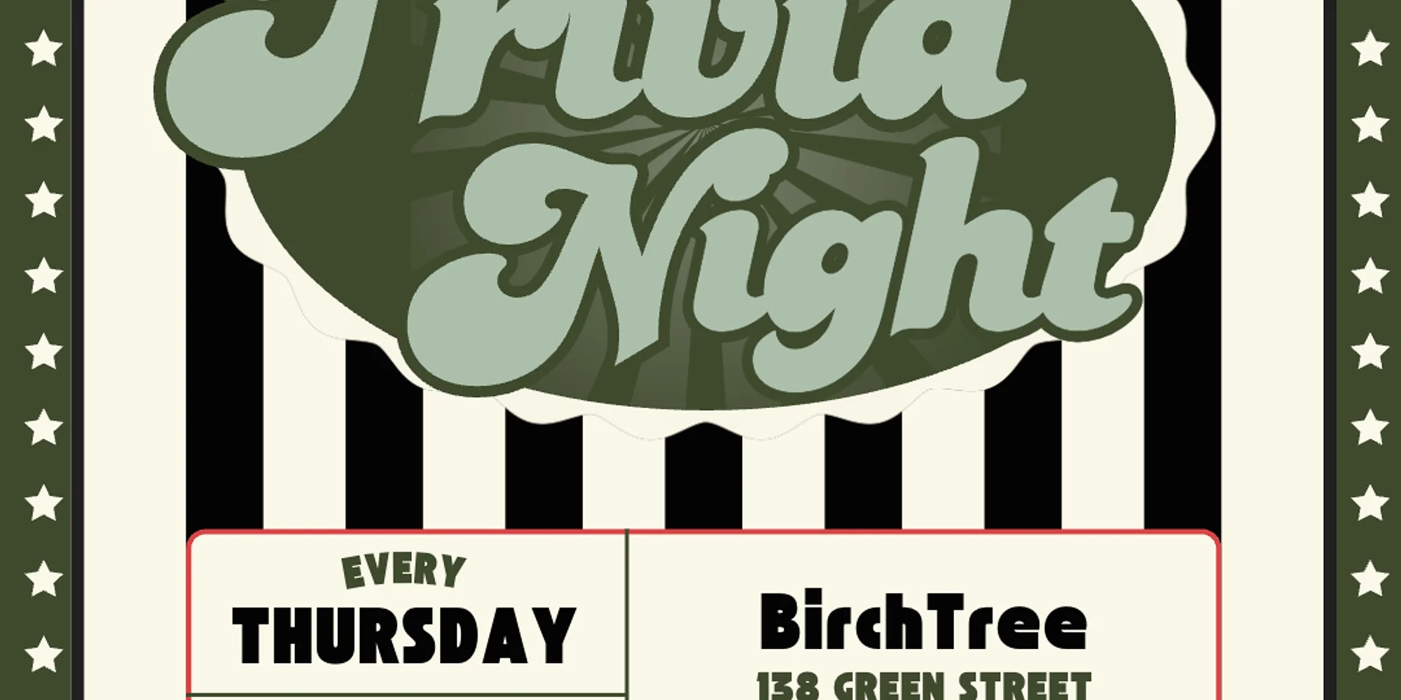Join us every Thursday from 6–9 PM for Trivia Night! Enjoy delicious food, craft cocktails, local beer, and great vibes. Bring your team, test your knowledge, and compete for prizes awarded to the top three teams!