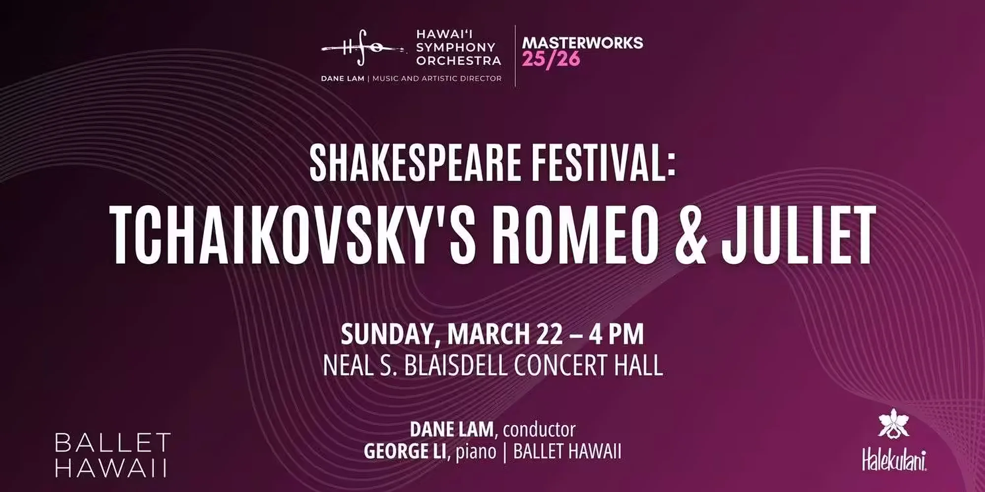 Sounds of Shakespeare Festival: Tchaikovskyʻs Romeo & Juliet TICKETS Promoter: Hawaii Symphony Orchestra Ages 3 & up will need to purchase a ticket for entry. No ticket limit. **Additional inventory available at myhso.org or at Hawaii Theatre Box Office. **Any discounts will only be available at the Blaisdell on the day of the event Venue: Blaisdell Concert Hall Sale Date: Friday, September 19, 2025 @ 10:00 am HST Payment Accepted by: Cash/Visa/Master Card/Discover Service Fees: Box Office sales – $1.00 per ticket facility fee Applicable fees apply to all Ticketmaster Internet/Mobile. Ticketmaster: Online www.ticketmaster.com Ticketmaster TDD (Telecommunications Device for the Deaf): 1-800-474-4833 Blaisdell Box Office: Blaisdell Box Office info line: (808) 768-5252 Blaisdell Box Office TDD (Telecommunications Device for the Deaf): (808) 768-9270