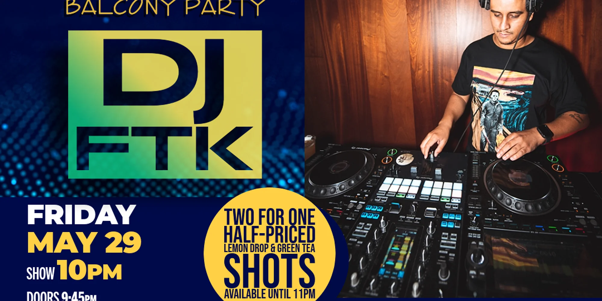Blue Nile Balcony Room Turn Up Balcony Party presents DJ FTK Doors 9:45PM. DRINK SPECIAL: TWO FOR ONE HALF-PRICED LEMON DROP & GREEN TEA SHOTS available until 11PM. Ages 21+. FREE ADMISSION with Valid I.D.