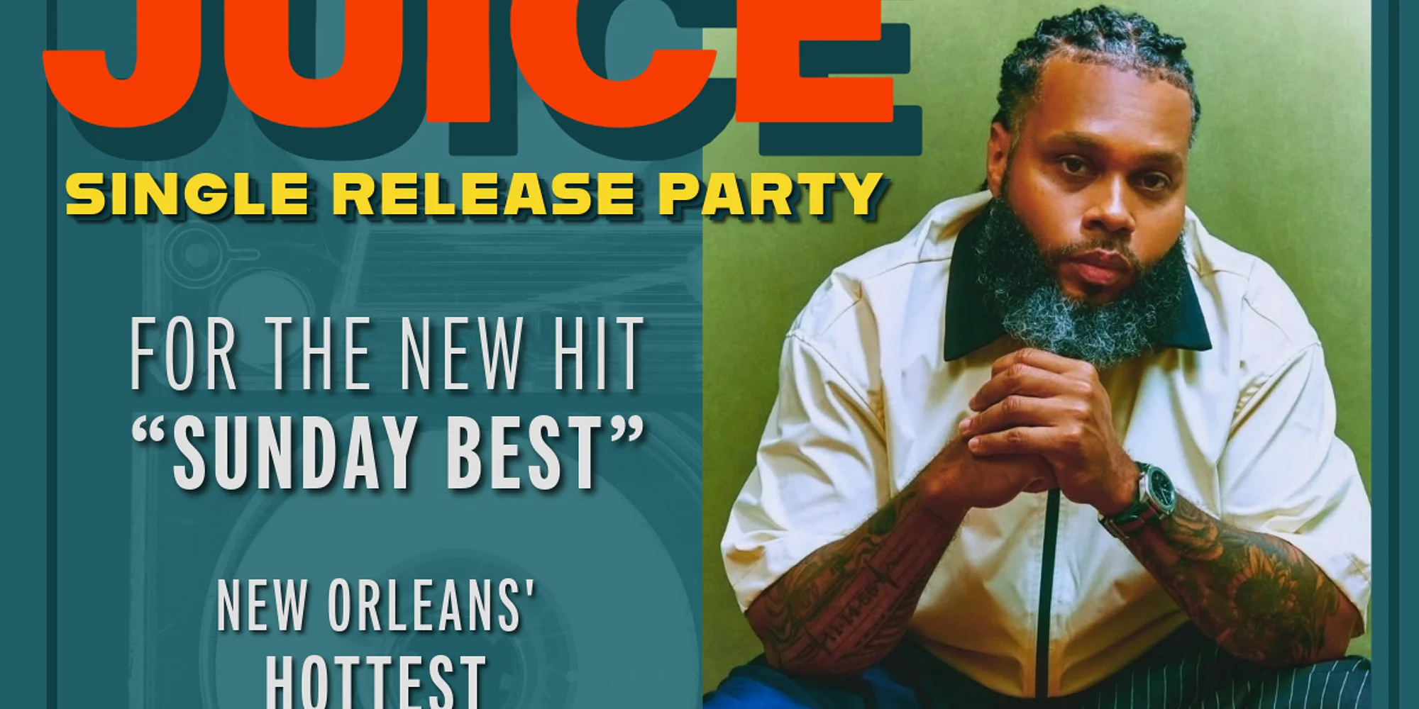 Blue Nile presents Juice SINGLE RELEASE PARTY for the NEW HIT “SUNDAY BEST” Fresh off the Maroon 5 Vegas Residency, Alumni of The Soul Rebels, New Orleans’ Hottest Emerging Artist Hailing from the 7th Ward neighborhood in New Orleans, Julian “Juice” Gosin is an artist, producer, trumpeter, MC, and educator. Best known for being a longtime member of award-winning and globally renowned brass band The Soul Rebels, Julian has worked with and been featured alongside Metallica, Nas, Lenny Kravitz, Wu-Tang Clan, Katy Perry, Maroon 5, and Maceo Parker. He has also recorded music with artists like Big Freedia, Trombone Shorty, G-Eazy, Phony ppl, and Dave East. His recent debut album, Be Intentional, launched his solo career. The self-produced and written album has elements of hip hop, pop, RnB, and dance music and features Trombone Shorty, Nicolas Payton, and Nigel Hall. Ages 21+ FREE ADMISSION with Valid I.D. RSVP HERE