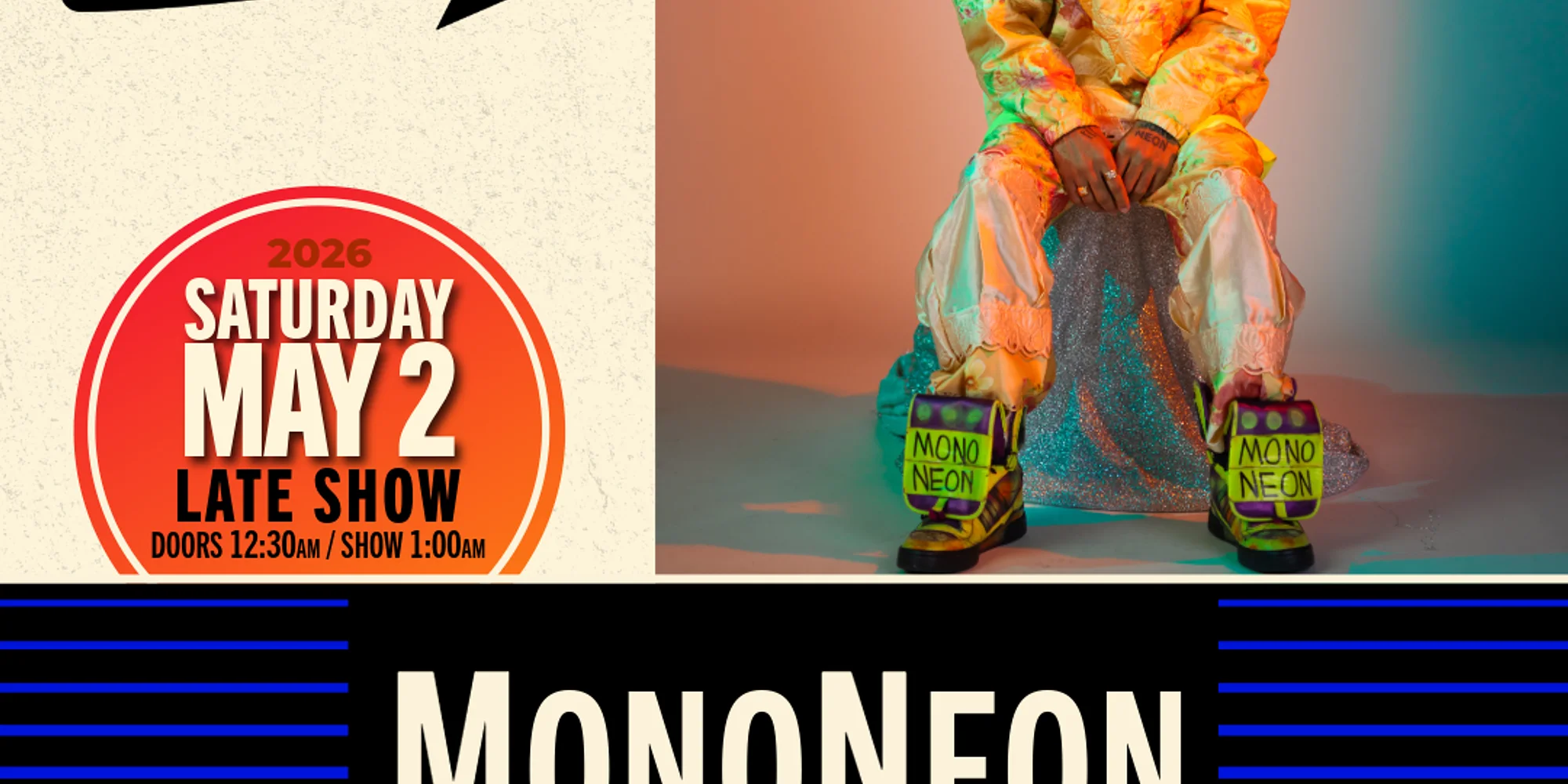 19th Annual Backbeat JazzFest Series presents MonoNeon LATE SHOW Saturday May 2 Doors 12:30AM / Show 1:00AM (This is a LATE SHOW Saturday May 2. Technically this show starts early morning May 3.) Advance Tickets $30 + Processing Fees & Applicable Taxes at Checkout. Day of show $35 + Processing Fees & Applicable Taxes at Checkout. MonoNeon, is an American bassist and experimental musician from Memphis, Tennessee. He is known for his presence onYouTube playing bass guitar and being one of the last people to work with Prince. Thomas is a Grammy Award winning artist, for his participation on the 2020 Nas album King’s Disease. Flea of the Red Hot Chili Peppers has referred to Mono as “The greatest fucking electric bass player”. On November 1, 2022, Fender released the MonoNeon Collection, which included the MonoNeon Jazz Bass V Signature. All sales are final and refunds are only allowed in limited circumstances such as canceled events. If your event is canceled, postponed, rescheduled, or moved, we will attempt to contact you to update you on the status of the event, and inform you of any refund, credit, or exchange procedures. All shows are for ages 21 and up. Valid ID required upon entry. ADVANCE TICKETS