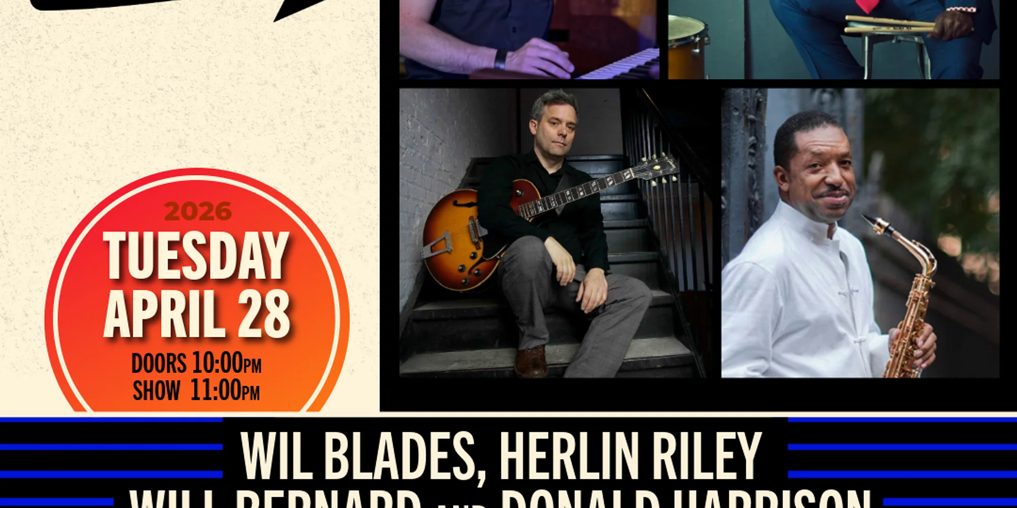 19th Annual Backbeat JazzFest Series presents Wil Blades, Herlin Riley, Will Bernard and Donald Harrison Play the Music of Dr. Lonnie Smith Tuesday April 28 Doors 9:00PM / Show 10:00PM Advance Tickets $25 + Processing Fees & Applicable Taxes at Checkout. Jazz organ authority, the legendary Dr. Lonnie Smith has called Wil Blades “the future,” anointing him the heir apparent to “carry on the legend the legacy of the B-3 organ.” All sales are final and refunds are only allowed in limited circumstances such as canceled events. If your event is canceled, postponed, rescheduled, or moved, we will attempt to contact you to update you on the status of the event, and inform you of any refund, credit, or exchange procedures. All shows are for ages 21 and up. Valid ID required upon entry. ADVANCE TICKETS