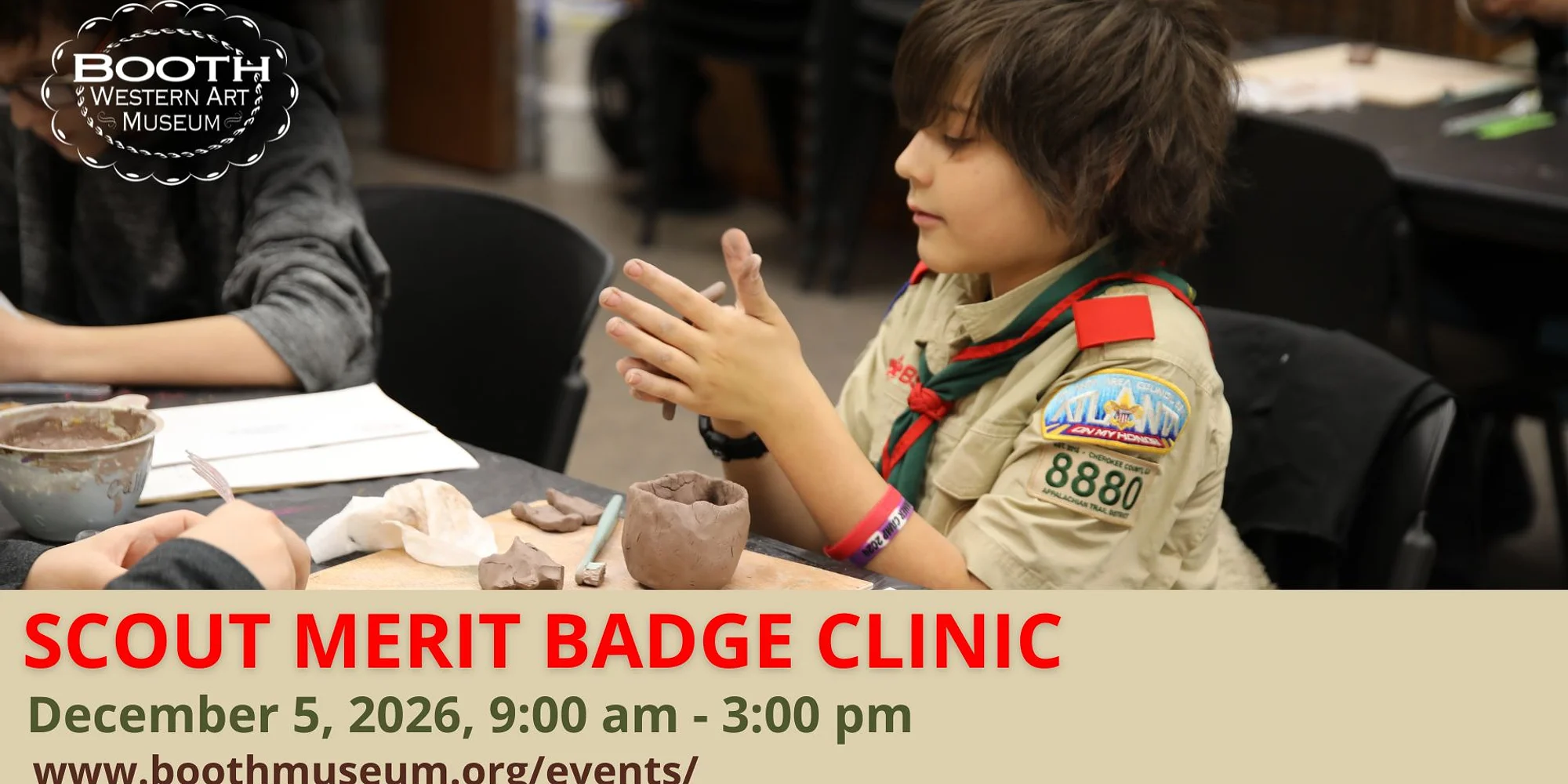 December Scout Merit Badge Clinic Saturday, December 5, 2026, 9:00 AM – 3:00 PM The Booth Museum December Scout Merit Badge Clinic for Scouts BSA, endorsed by the Atlanta and Northwest Georgia Councils, will be hosted on December 5 from 9:00 AM – 3:00 PM. The Merit Badge Clinic will give Scouts the opportunity to earn either an (American) Indian Lore or Pottery Merit Badge taught by qualified museum educators. Lunch is included for Scouts (pizza, cookie and a drink). *Classroom space is limited Pottery: $35.00 (American) Indian Lore: $30.00 REGISTER HERE