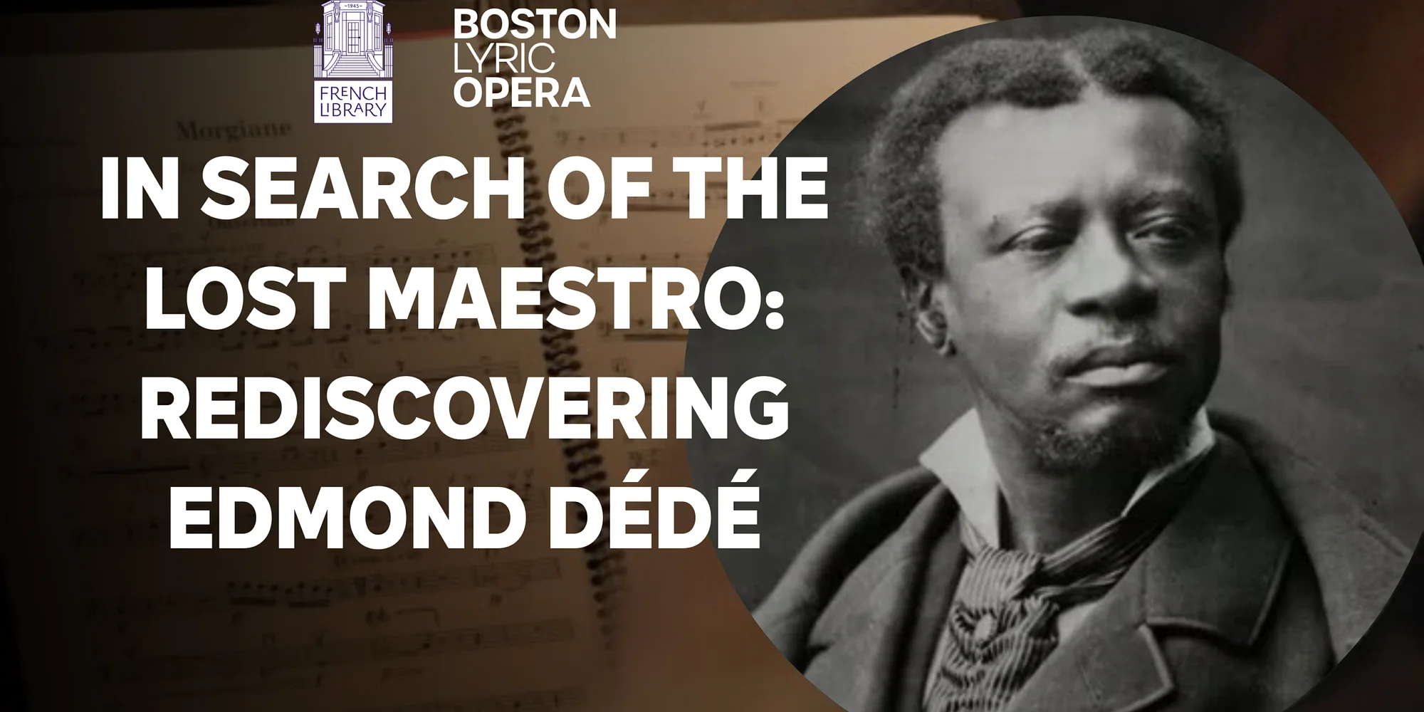In Search of the Lost Maestro: Rediscovering Edmond Dédé Thursday, March 19, 2026 6:00 PM – 8:00 PM The French Library 53 Marlborough Street Boston, MA 02116 Tickets: $18 / $14 French Library Members Learn More REGISTER Presented by The French Library in partnership with Boston Lyric Opera. Did you know that for more than a century, one of America's greatest operas was lost to history? Born in New Orleans in 1827 as a free person of color, Edmond Dédé became one of the most accomplished classical musicians of the 19th century. Trained in the European tradition and deeply rooted in Creole culture, he built a remarkable career in France, where he conducted orchestras and composed nearly 150 works. Yet his greatest achievement, a four-act French grand opera titled Morgiane ou le Sultan d'Ispahan, was never performed during his lifetime. More than a century later, Morgiane was rediscovered in the archives of Harvard University, where librarian Andrea Cawelti uncovered the handwritten score. This extraordinary find sparked an international effort to restore and bring Dédé's long-forgotten masterpiece to the stage. In 2025, Morgiane finally premiered in New Orleans, followed by performances in Washington, D.C., and at Jazz at Lincoln Center in New York, marking a historic moment in American music history. French filmmaker Marguerite de Bourgoing will present her ongoing documentary research on Edmond Dédé and the remarkable journey of Morgiane. She will be joined by Andrea Cawelti of Harvard University, who will share the story of the manuscript's discovery. The evening will also feature recorded musical excerpts from Morgiane, from the newly released audio by Opera Lafayette. The conversation will be moderated by Morgan Beckford, Director of Learning at Boston Lyric Opera, a soprano committed to broadening access to opera and celebrating diverse musical voices. This event offers a rare opportunity to rediscover a forgotten master and celebrate a powerful chapter of transatlantic and African American musical history. This event will be presented in English and welcomes all interested attendees. The presentation will be followed by a Q&A with the audience, and a reception with light refreshments.